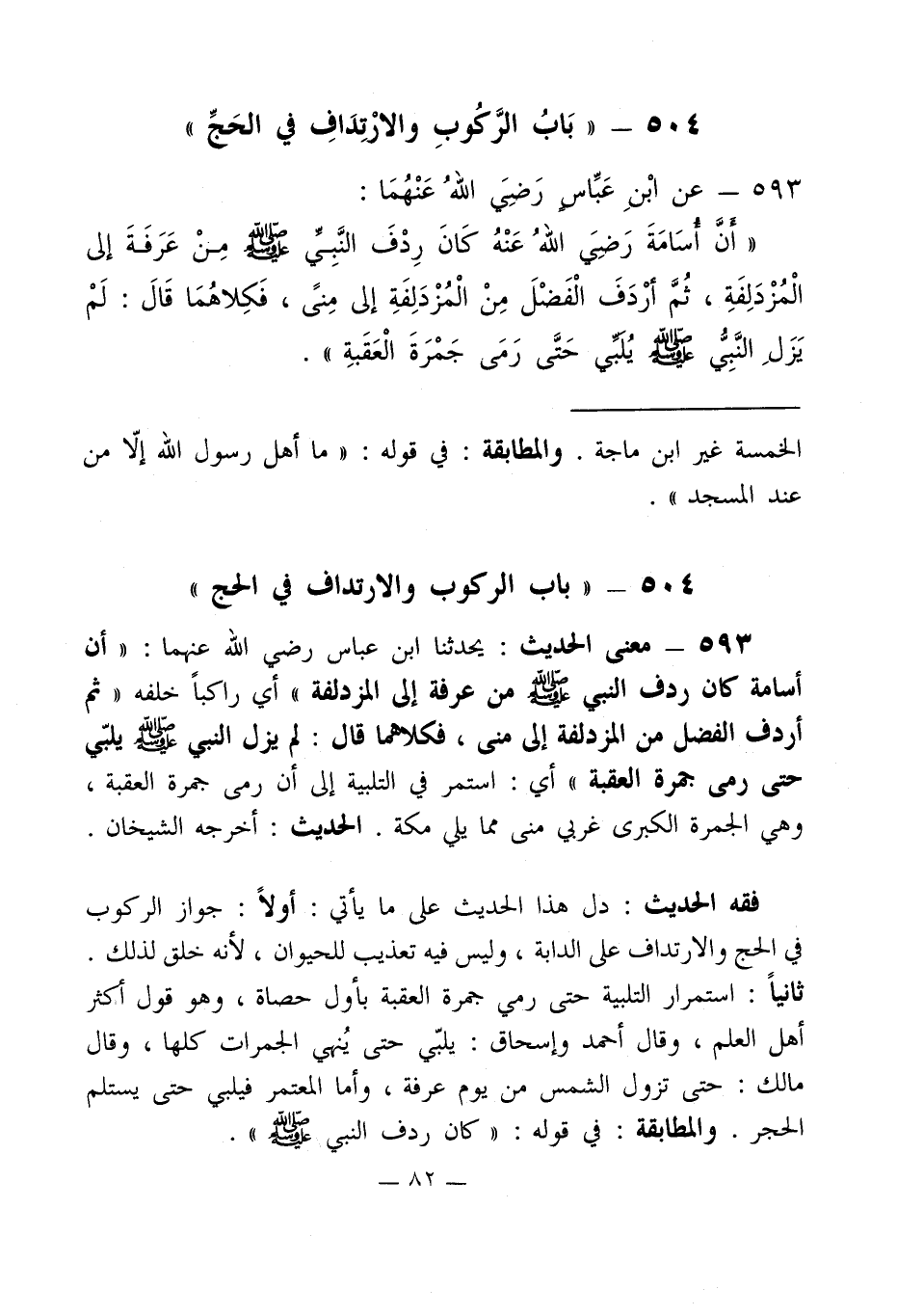 504 - " باب الركوب والارتداف في الحج "