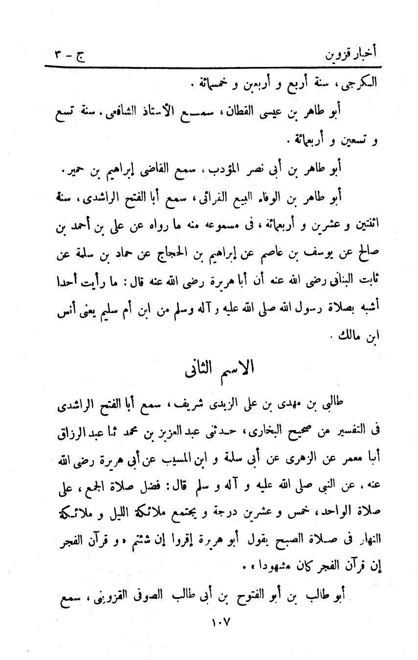 طالبي بْنُ مَهْدِيِّ بْنِ عَلِيٍّ الزَّيْدِيُّ شَرِيفٌ سَمِعَ أَبَا الْفَتْحِ الرَّاشِدِيَّ في التفسير من صحيح البخاري حَدَّثَنِي عَبْدُ الْعَزِيزِ بْنُ مُحَمَّدٍ ثنا عَبْدُ الرَّزَّاقِ أَنْبَأَ مَعْمَرٌ عَنِ الزُّهْرِيِّ عَنْ أَبِي سَلَمَةَ وَابْنُ الْمُسَيَّبِ عَنْ أَبِي هُرَيْرَةَ رضي اللَّه عنه عن النبي صَلَّى اللَّهُ عَلَيْهِ وَآلِهِ وَسَلَّمَ قَالَ: "فَضْلُ صَلاةِ الْجَمْعِ عَلَى صلاة الواحد خمس وعشرين دَرَجَةً وَيَجْتَمِعُ مَلائِكَةُ اللَّيْلِ وَمَلائِكَةُ النَّهَارِ فِي صَلاةِ الصُّبْحِ" يَقُولُ أَبُو هُرَيْرَةَ: اقْرَءُوا إِنْ شِئْتُمْ: {وَقُرْآنَ الْفَجْرِ إِنَّ قُرْآنَ الْفَجْرِ كَانَ مَشْهُوداً}