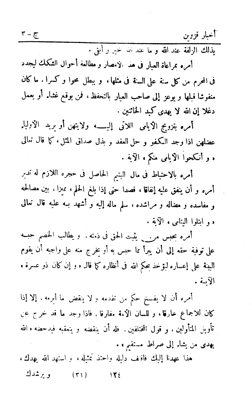 أمره بحبس من يثبت الحق في ذمته ويطالب الخصم حبسه على توفية حقه إلى أن يبرأ مما حبس به أو يخرج منه على واجبه أن يقوم البينة على إعساره ليؤخذ بحكم اللَّه في أنظاره كما قَالَ: {وَإِنْ كَانَ ذُو عُسْرَةٍ} الآية.