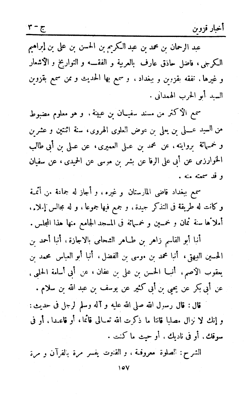عبد الرحمان بْن مُحَمَّد بْن عَبْد الكريم بْن الحسن بْن علي بْن إبراهيم الكرجي فاضل حاذق عارف بالعربية والفقه والتواريخ والأشعار وغيرها تفقه بقزوين وببغداد وسمع بها الحديث وممن سمع بقزوين السيد أَبُو الحرب الهمداني.