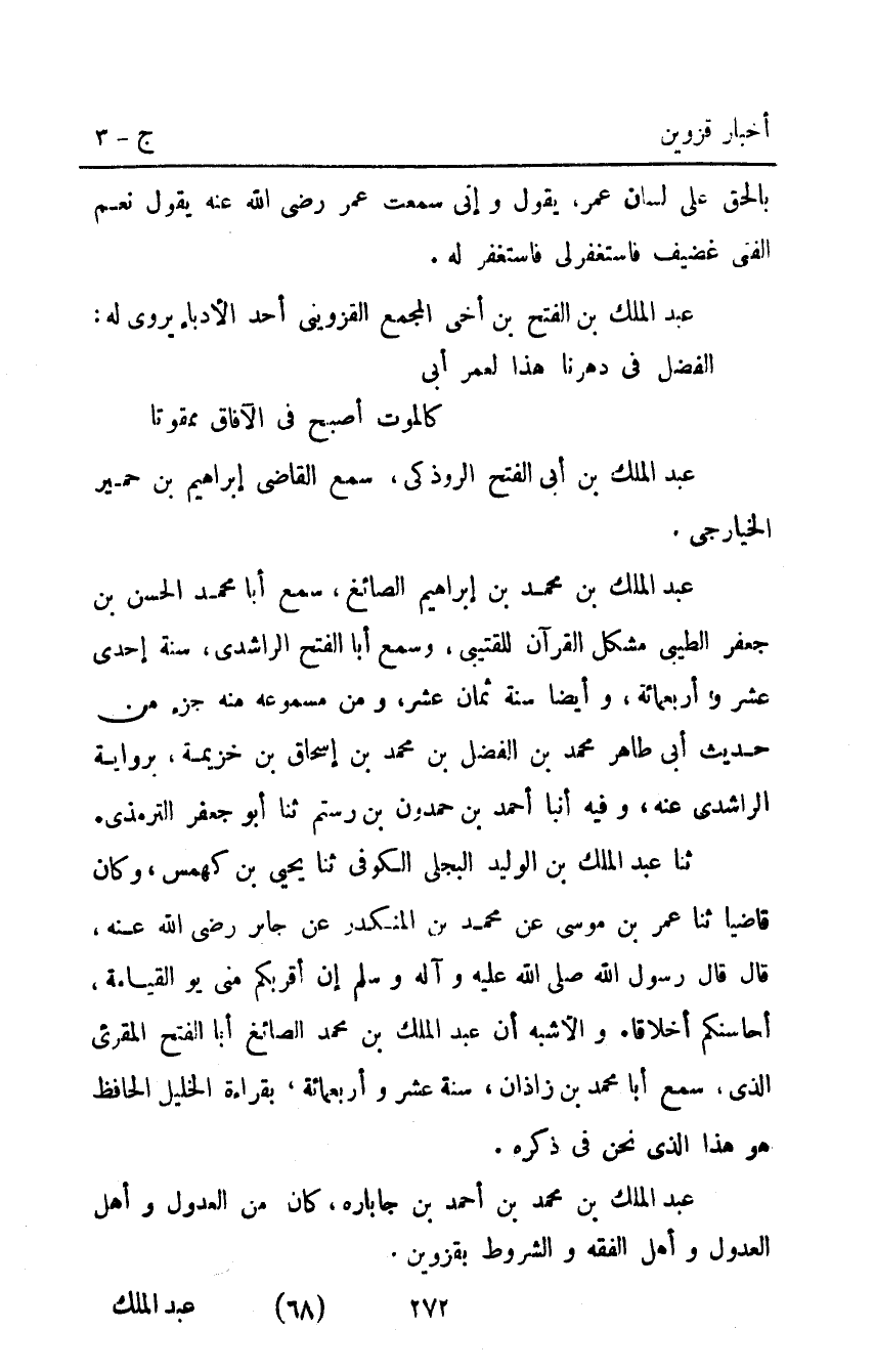عَبْد الملك بْن مُحَمَّد بْن أحمد بْن جاباره كان من العدول وأهل العدول وأهل الفقه والشروط بقزوين.