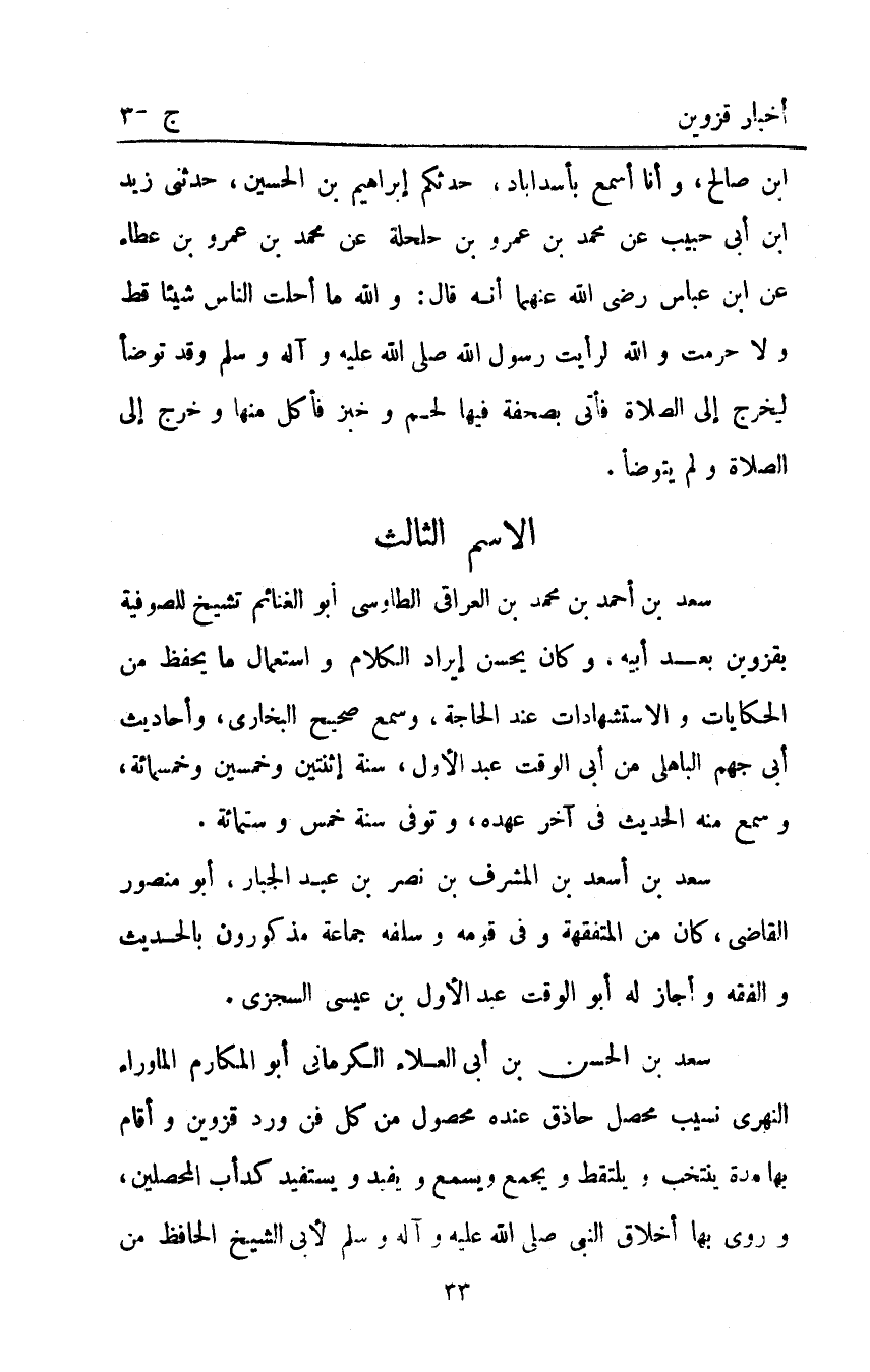 ابن صَالِحٍ وَأَنَا أَسْمَعُ بِأَسَدَابَادَ حَدَّثَكُمْ إبراهيم بْنُ الْحُسَيْنِ حَدَّثَنِي زَيْدُ ابن أَبِي حَبِيبٍ عَنْ مُحَمَّدِ بْنِ عَمْرِو بْنِ حَلْحَلَةَ عَنْ مُحَمَّدِ بْنِ عَمْرِو بْنِ عَطَاءٍ عَنِ ابن عَبَّاس رَضِيَ اللَّهُ عَنْهُمَا أَنَّهُ قَالَ وَاللَّهِ مَا أَحَلَّتِ النَّاسُ شَيْئًا قَطُّ وَلا حَرَّمَتْ وَاللَّهِ لَرَأَيْتُ رَسُولَ اللَّهِ صَلَّى اللَّهُ عَلَيْهِ وَآلِهِ وَسَلَّمَ وَقَدْ تَوَضَّأَ لِيَخْرُجَ إِلَى الصَّلاةِ فَأَتَى بِصَحْفَةٍ فِيهَا لَحْمٌ وَخُبْزٌ فَأَكَلَ مِنْهَا وَخَرَجَ إِلَى الصَّلاةِ وَلَمْ يتوضأ.