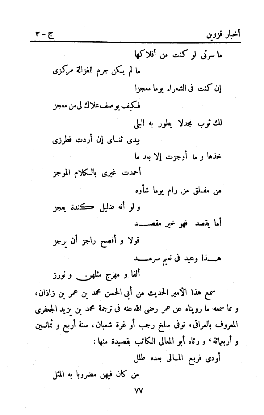 سمع هذا الأمير الحديث من أبي الحسن مُحَمَّد بْن عمر بْن زاذان ومما سمعه مَا رويناه عن عمر رَضِيَ اللَّهُ عَنْهُ في ترجمة محمد بْن يزيد الجعفري المعروف بالعراقي توفي سلخ رجب أو غرة شعبان سنة أربع وثمانين وأربعمائة ورثاه أَبُو المعالي الكاتب بقصيدة منها: