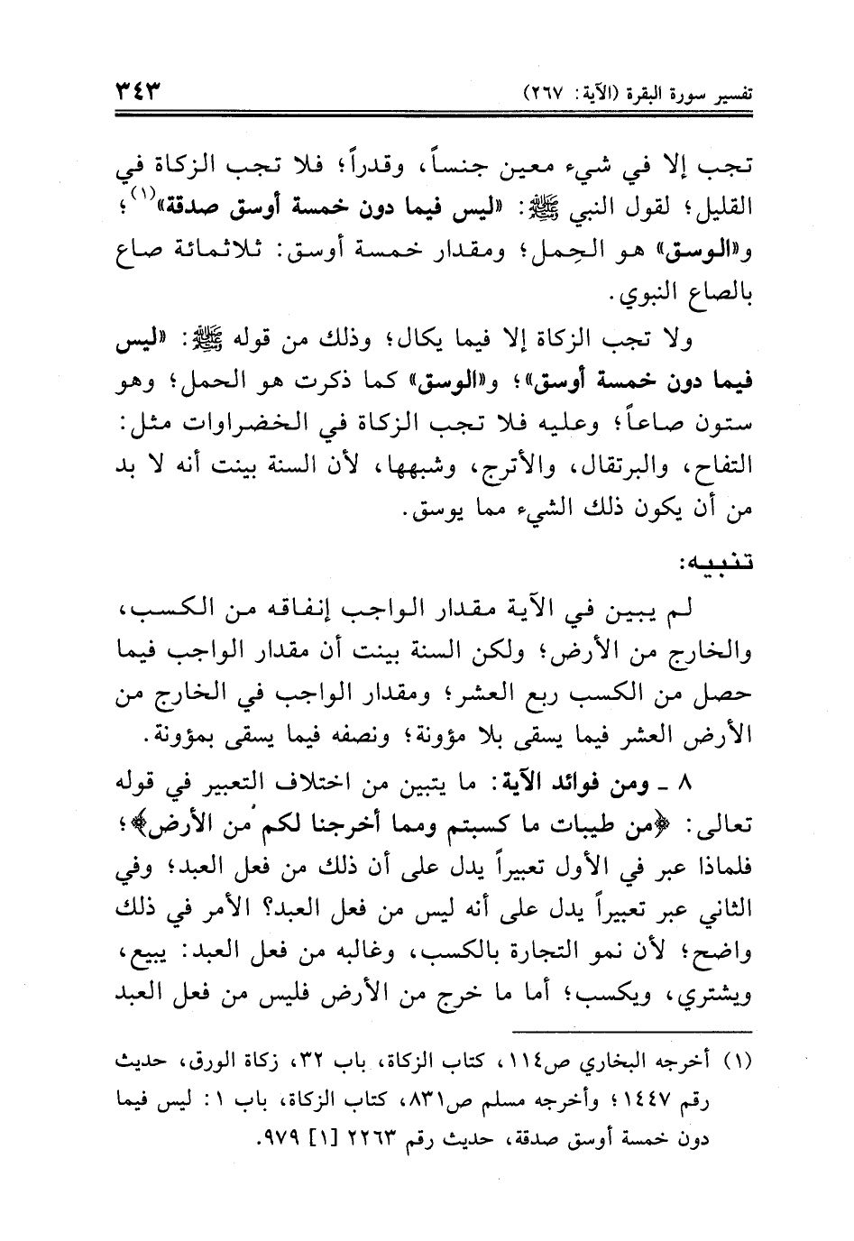 لم يبين في الآية مقدار الواجب إنفاقه من الكسب، والخارج من الأرض؛ ولكن السنة بينت أن مقدار الواجب فيما حصل من الكسب ربع العشر؛ ومقدار الواجب في الخارج من الأرض العشر فيما يسقى بلا مؤونة؛ ونصفه فيما يسقى بمؤونة.