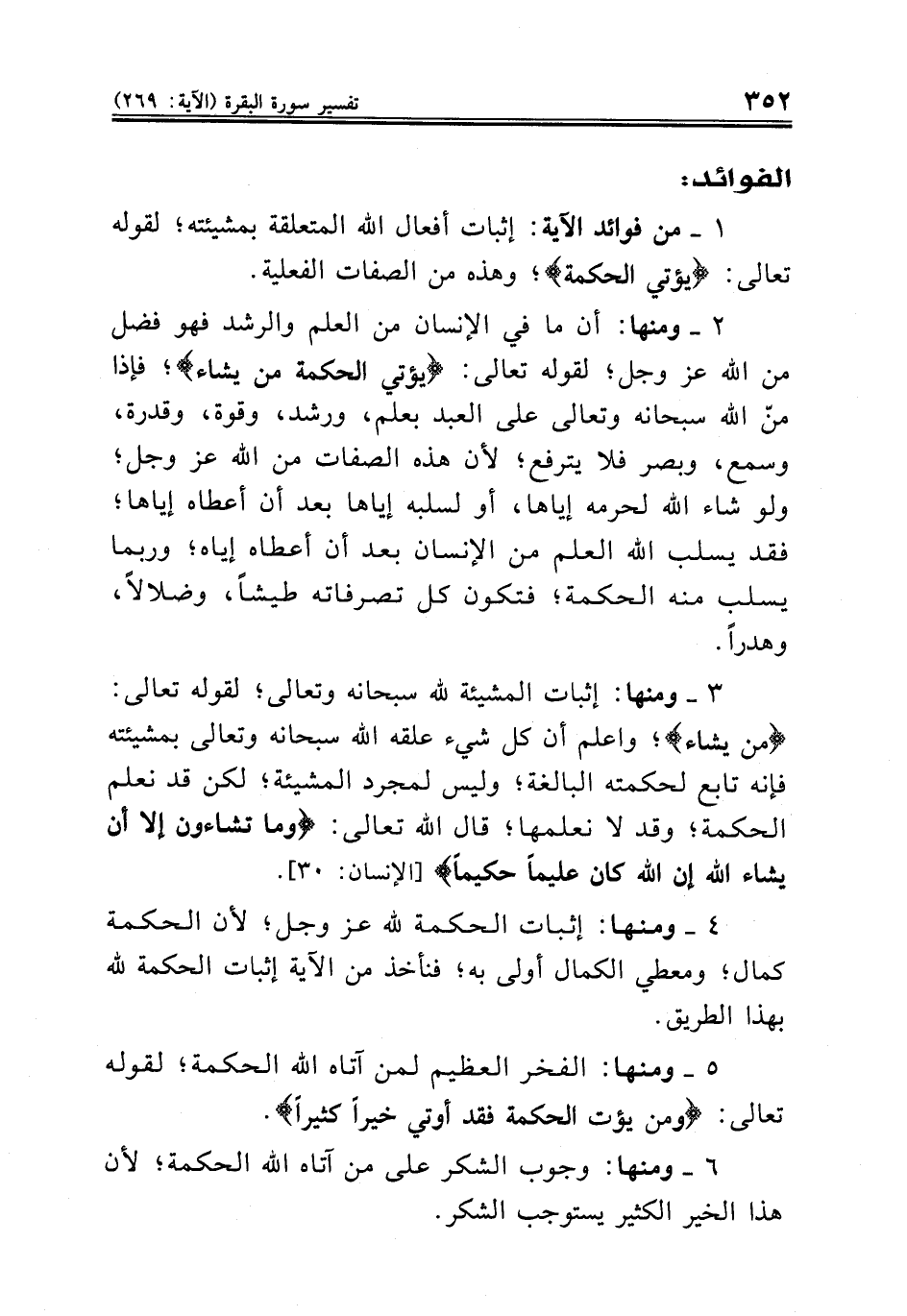 ١ - من فوائد الآية: إثبات أفعال الله المتعلقة بمشيئته؛ لقوله تعالى: {يؤتي الحكمة}؛ وهذه من الصفات الفعلية.