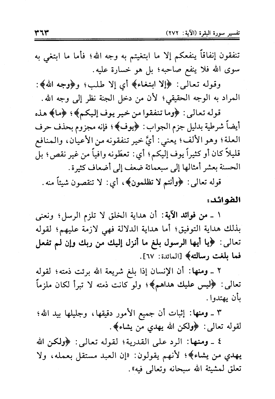 ٤ - ومنها: الرد على القدرية؛ لقوله تعالى: {ولكن الله يهدي من يشاء}؛ لأنهم يقولون: «إن العبد مستقل بعمله، ولا تعلق لمشيئة الله سبحانه وتعالى فيه».