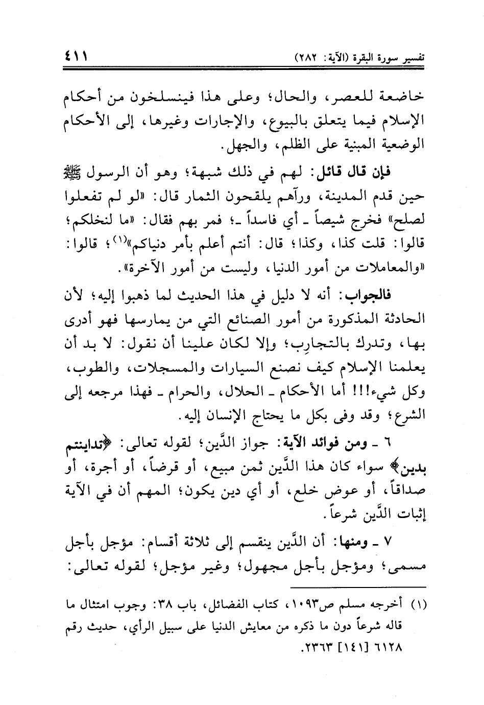 (¬١) أخرجه مسلم ص ١٠٩٣، كتاب الفضائل، باب ٣٨: وجوب امتثال ما قاله شرعاً دون ما ذكره من معايش الدنيا على سبيل الرأي، حديث رقم ٦١٢٨ [١٤١] ٢٣٦٣.