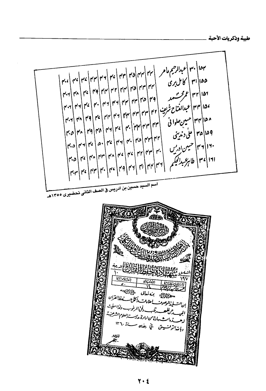 اسم السيد حسين بن ادريس في الصف الثاني تحضيري 1355هـ…