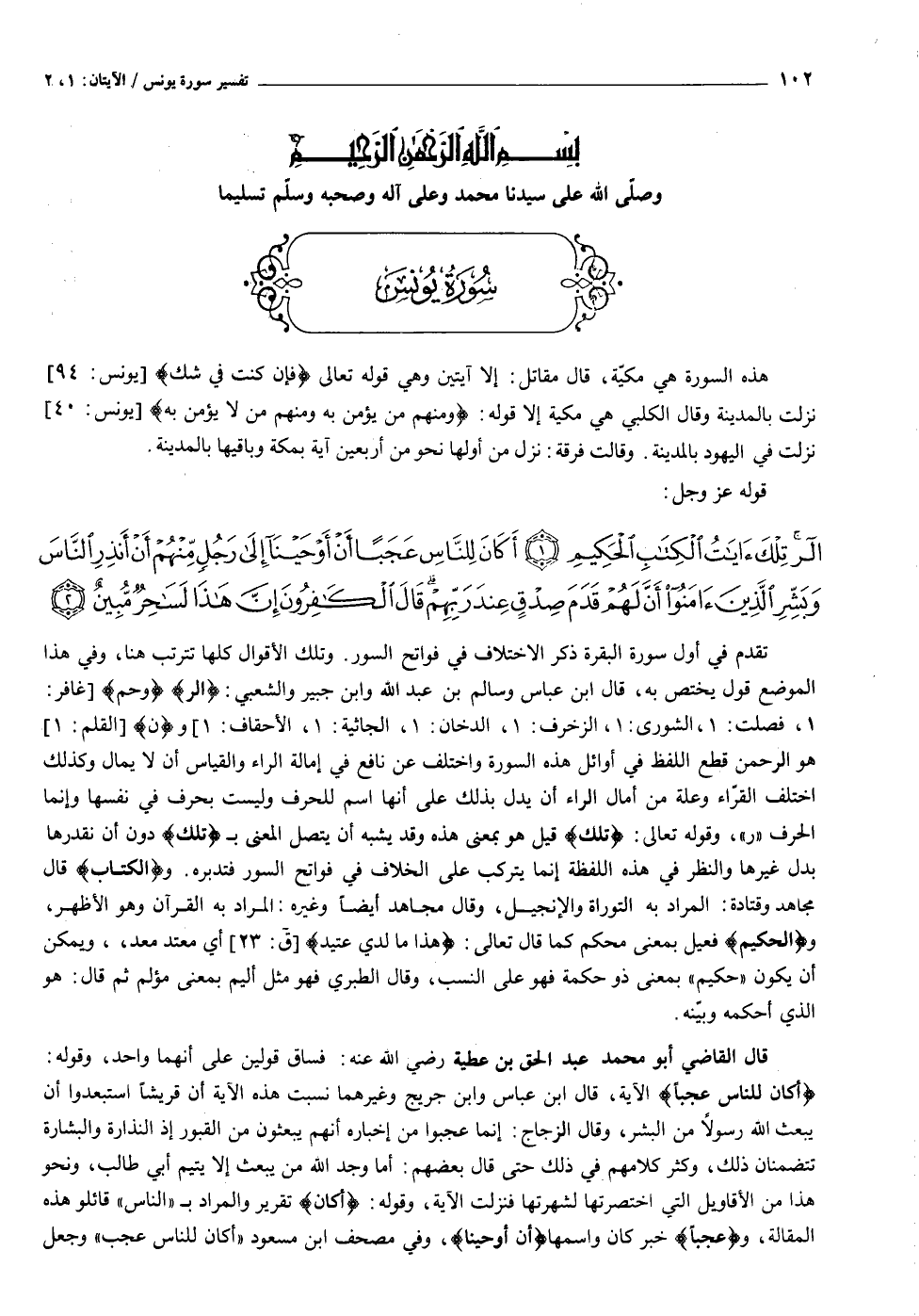 [سورة يونس (١٠) : الآيات ١ الى ٢]