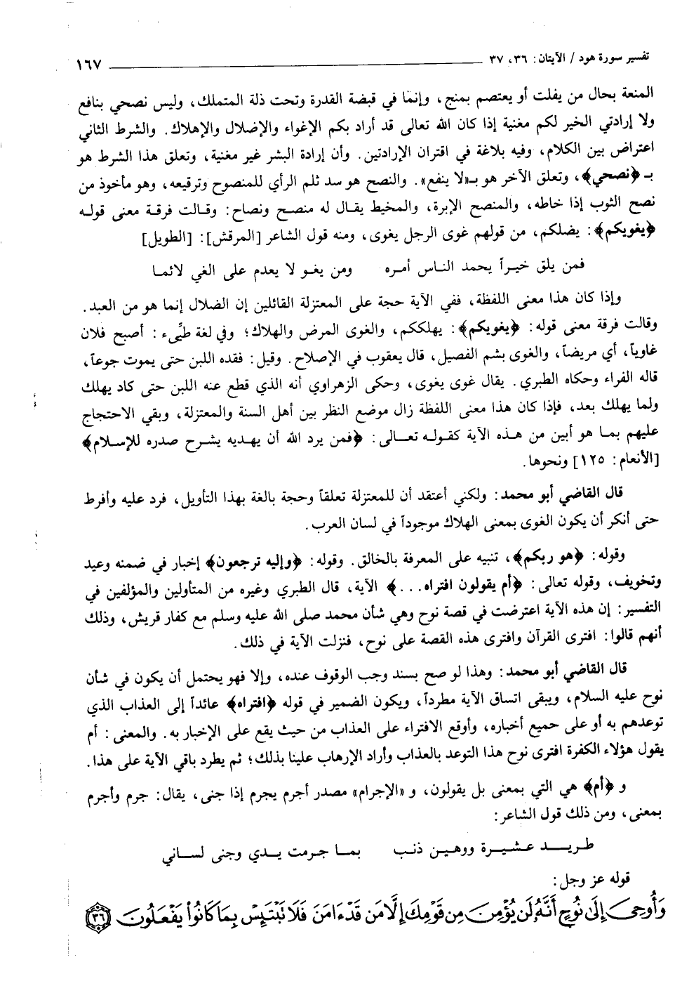 قال القاضي أبو محمد: ولكني أعتقد أن للمعتزلة تعلقا وحجة بالغة بهذا التأويل، فرد عليه وأفرط حتى أنكر أن يكون الغوى بمعنى الهلاك موجودا في لسان العرب.