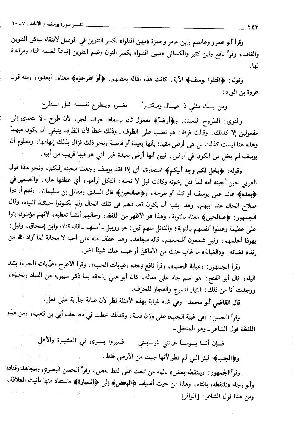 وقوله: اقْتُلُوا يُوسُفَ الآية، كانت هذه مقالة بعضهم. أَوِ اطْرَحُوهُ معناه: أبعدوه، ومنه قول عروة بن الورد: