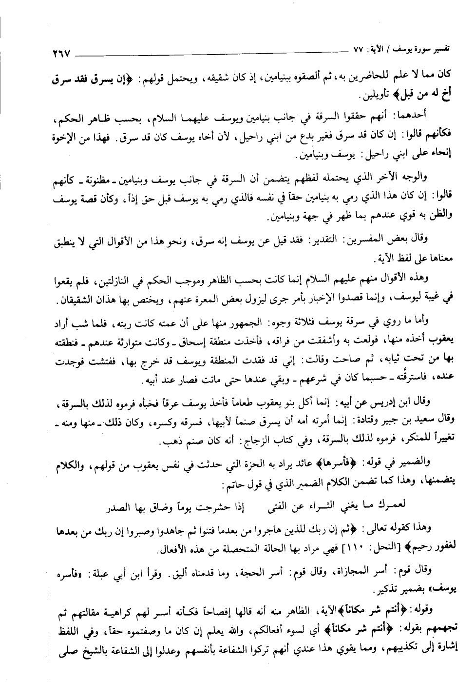 وقال بعض المفسرين: التقدير: فقد قيل عن يوسف إنه سرق، ونحو هذا من الأقوال التي لا ينطبق معناها على لفظ الآية.