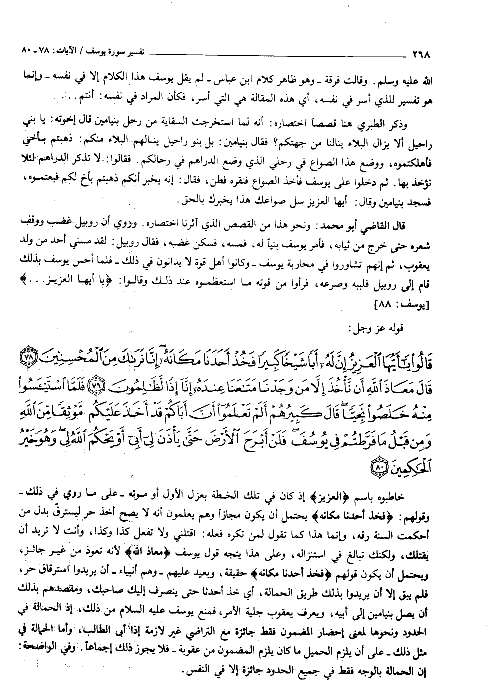قالُوا يا أَيُّهَا الْعَزِيزُ إِنَّ لَهُ أَباً شَيْخاً كَبِيراً فَخُذْ أَحَدَنا مَكانَهُ إِنَّا نَراكَ مِنَ الْمُحْسِنِينَ (٧٨) قالَ مَعاذَ اللَّهِ أَنْ نَأْخُذَ إِلاَّ مَنْ وَجَدْنا مَتاعَنا عِنْدَهُ إِنَّا إِذاً لَظالِمُونَ (٧٩) فَلَمَّا اسْتَيْأَسُوا مِنْهُ خَلَصُوا نَجِيًّا قالَ كَبِيرُهُمْ أَلَمْ تَعْلَمُوا أَنَّ أَباكُمْ قَدْ أَخَذَ عَلَيْكُمْ مَوْثِقاً مِنَ اللَّهِ وَمِنْ قَبْلُ ما فَرَّطْتُمْ فِي يُوسُفَ فَلَنْ أَبْرَحَ الْأَرْضَ حَتَّى يَأْذَنَ لِي أَبِي أَوْ يَحْكُمَ اللَّهُ لِي وَهُوَ خَيْرُ الْحاكِمِينَ (٨٠)