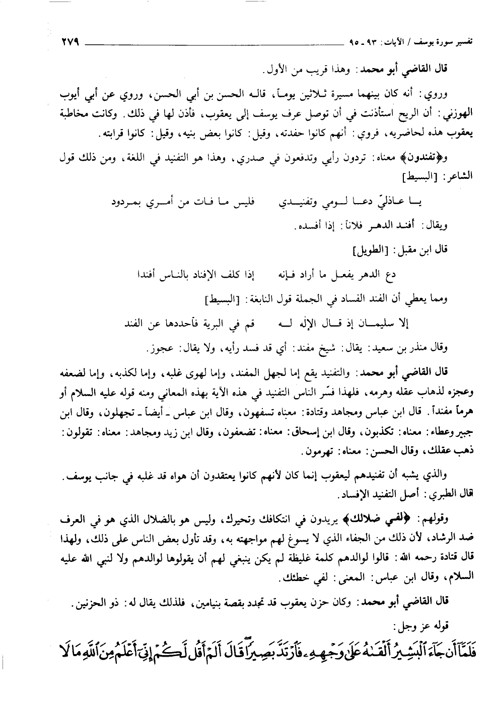 والذي يشبه أن تفنيدهم ليعقوب إنما كان لأنهم كانوا يعتقدون أن هواه قد غلبه في جانب يوسف.