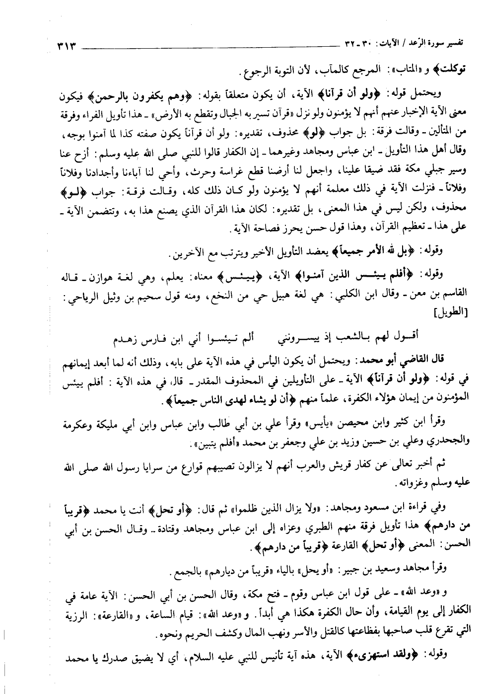 وقوله: أَفَلَمْ يَيْأَسِ الَّذِينَ آمَنُوا الآية، يَيْأَسِ معناه: يعلم، وهي لغة هوازن- قاله القاسم بن معن- وقال ابن الكلبي: هي لغة هبيل حي من النخع، ومنه قول سحيم بن وثيل الرياحي: