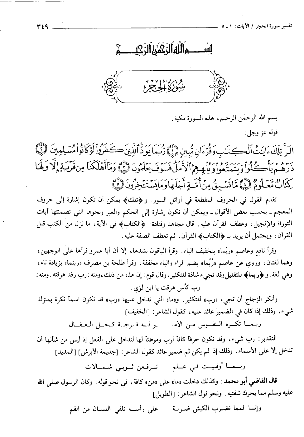 [سورة الحجر (١٥) : الآيات ١ الى ٥]