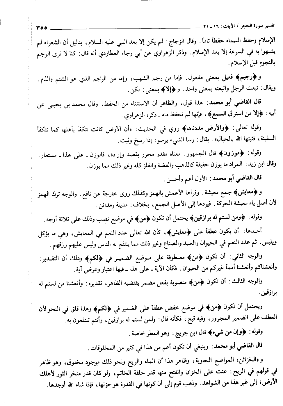 قال القاضي أبو محمد: هذا قول، والظاهر أن الاستثناء من الحفظ، وقال محمد بن يحيى عن أبيه: إِلَّا مَنِ اسْتَرَقَ السَّمْعَ، فإنها لم تحفظ منه- ذكره الزهراوي.