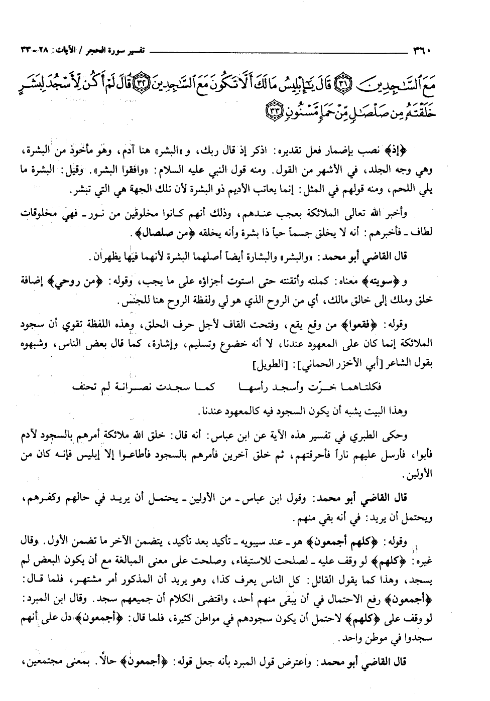 قال القاضي أبو محمد: واعترض قول المبرد بأنه جعل قوله: أَجْمَعُونَ حالا. بمعنى مجتمعين،