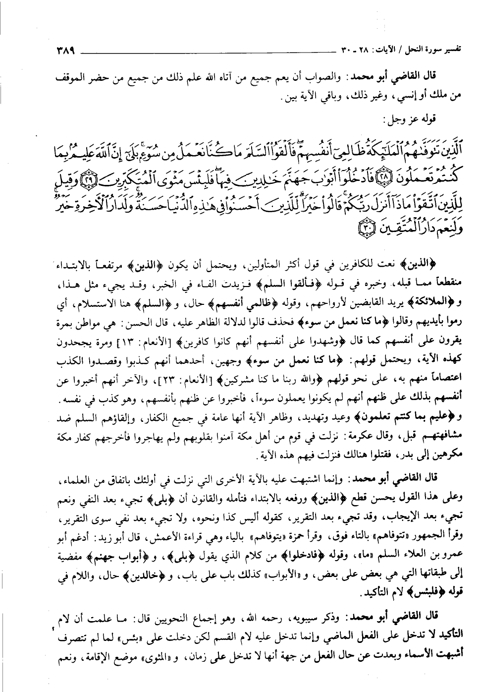 [سورة النحل (١٦) : الآيات ٢٨ الى ٣٠]