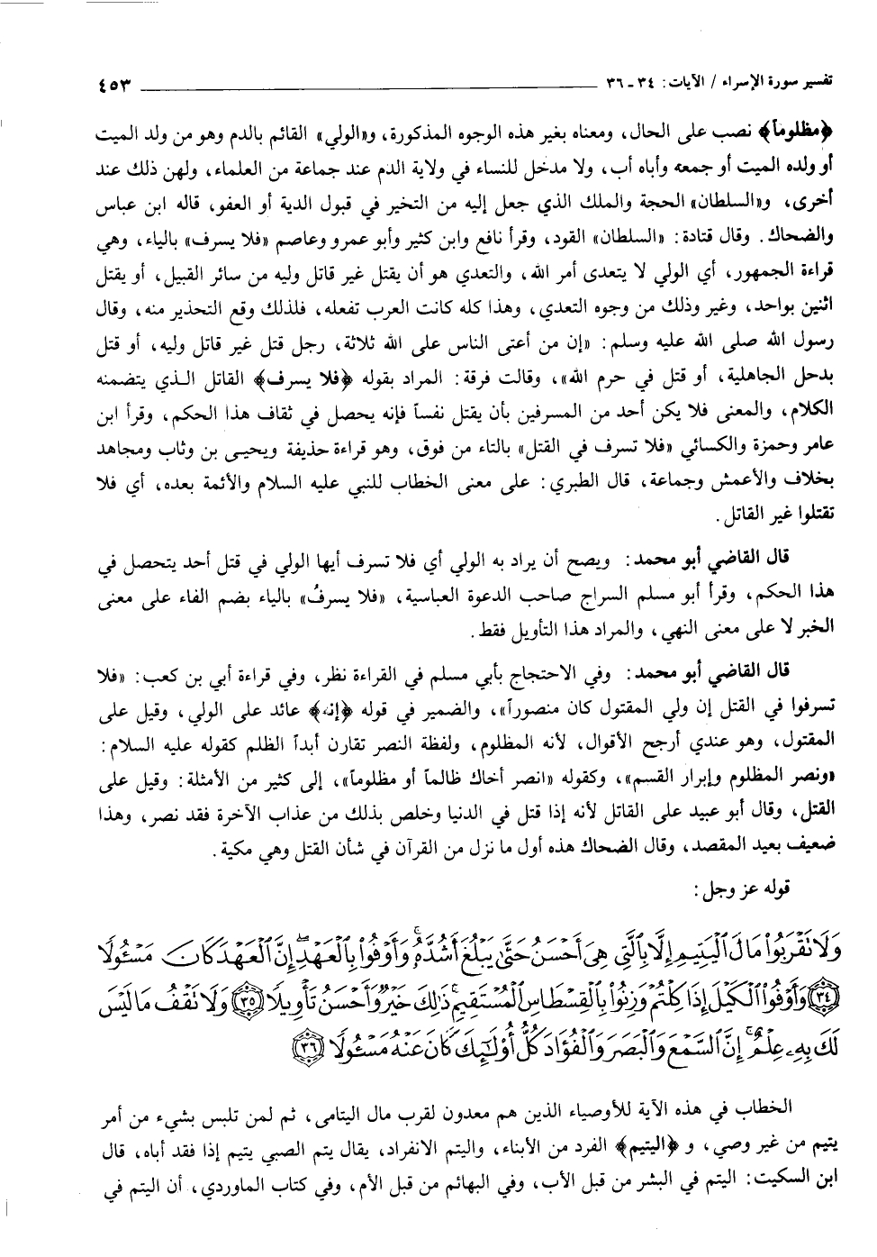 [سورة الإسراء (١٧) : الآيات ٣٤ الى ٣٦]