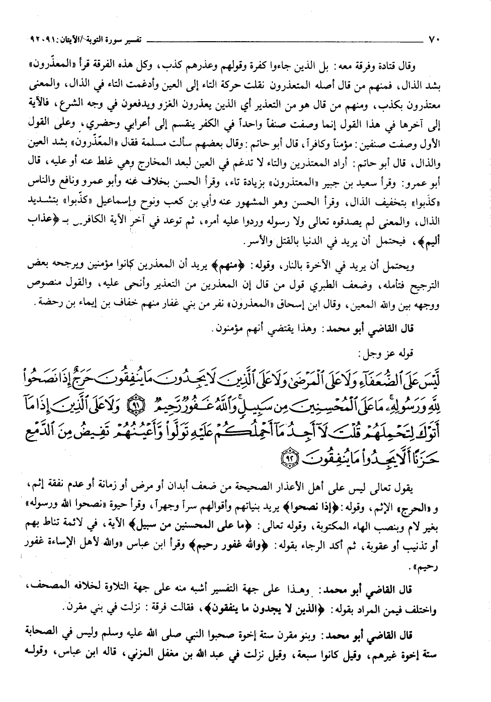 [سورة التوبة (٩) : الآيات ٩١ الى ٩٢]