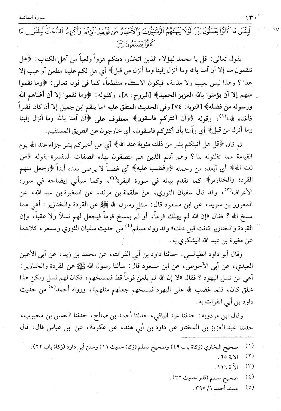 قُلْ يَا أَهْلَ الْكِتابِ هَلْ تَنْقِمُونَ مِنَّا إِلاَّ أَنْ آمَنَّا بِاللَّهِ وَما أُنْزِلَ إِلَيْنا وَما أُنْزِلَ مِنْ قَبْلُ وَأَنَّ أَكْثَرَكُمْ فاسِقُونَ (59) قُلْ هَلْ أُنَبِّئُكُمْ بِشَرٍّ مِنْ ذلِكَ مَثُوبَةً عِنْدَ اللَّهِ مَنْ لَعَنَهُ اللَّهُ وَغَضِبَ عَلَيْهِ وَجَعَلَ مِنْهُمُ الْقِرَدَةَ وَالْخَنازِيرَ وَعَبَدَ الطَّاغُوتَ أُولئِكَ شَرٌّ مَكاناً وَأَضَلُّ عَنْ سَواءِ السَّبِيلِ (60) وَإِذا جاؤُكُمْ قالُوا آمَنَّا وَقَدْ دَخَلُوا بِالْكُفْرِ وَهُمْ قَدْ خَرَجُوا بِهِ وَاللَّهُ أَعْلَمُ بِما كانُوا يَكْتُمُونَ (61) وَتَرى كَثِيراً مِنْهُمْ يُسارِعُونَ فِي الْإِثْمِ وَالْعُدْوانِ وَأَكْلِهِمُ السُّحْتَ لَبِئْسَ مَا كانُوا يَعْمَلُونَ (62) لَوْلا يَنْهاهُمُ الرَّبَّانِيُّونَ وَالْأَحْبارُ عَنْ قَوْلِهِمُ الْإِثْمَ وَأَكْلِهِمُ السُّحْتَ لَبِئْسَ مَا كانُوا يَصْنَعُونَ (63)