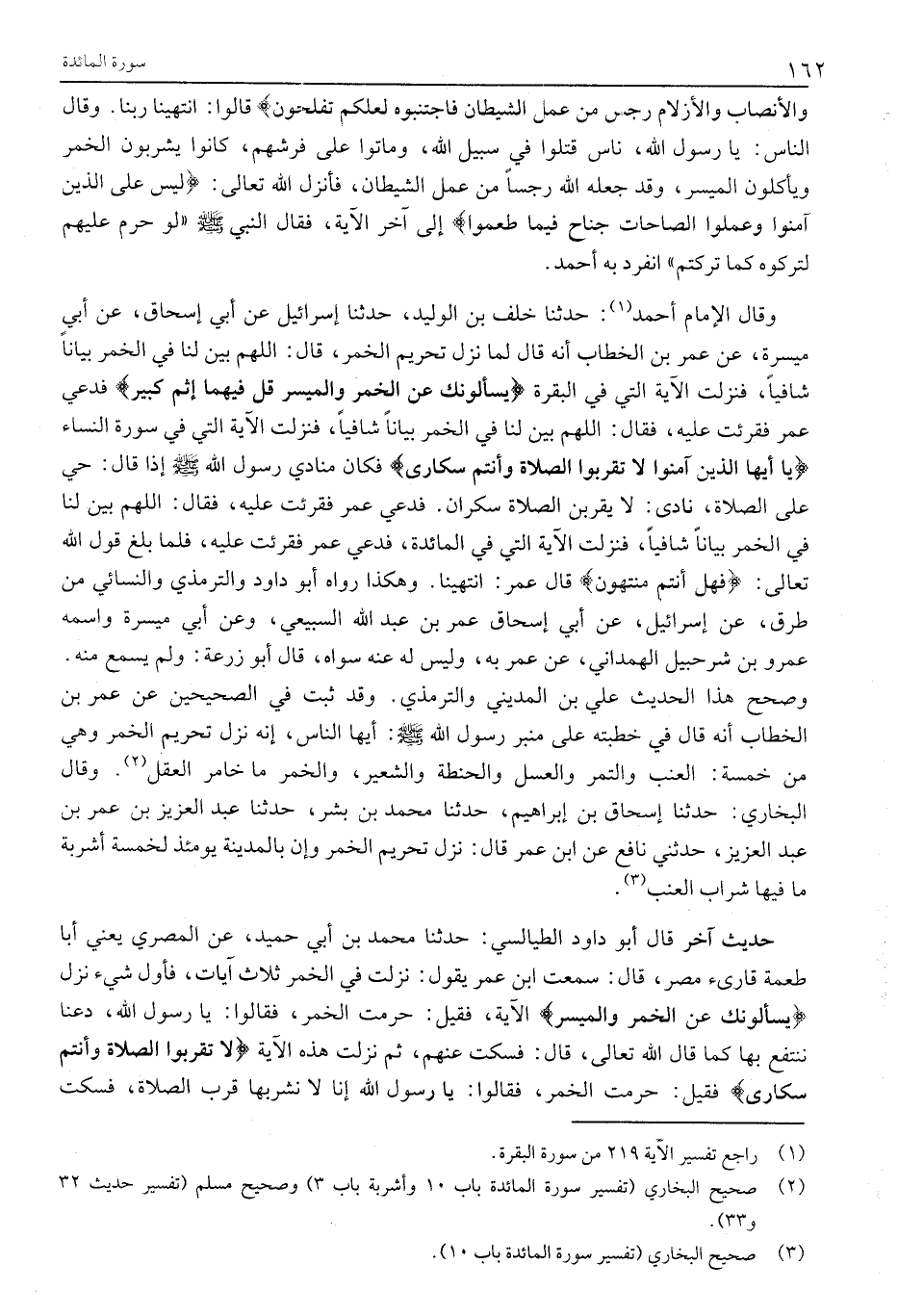 (2) صحيح البخاري (تفسير سورة المائدة باب 10 وأشربة باب 3) وصحيح مسلم (تفسير حديث 32 و 33) .