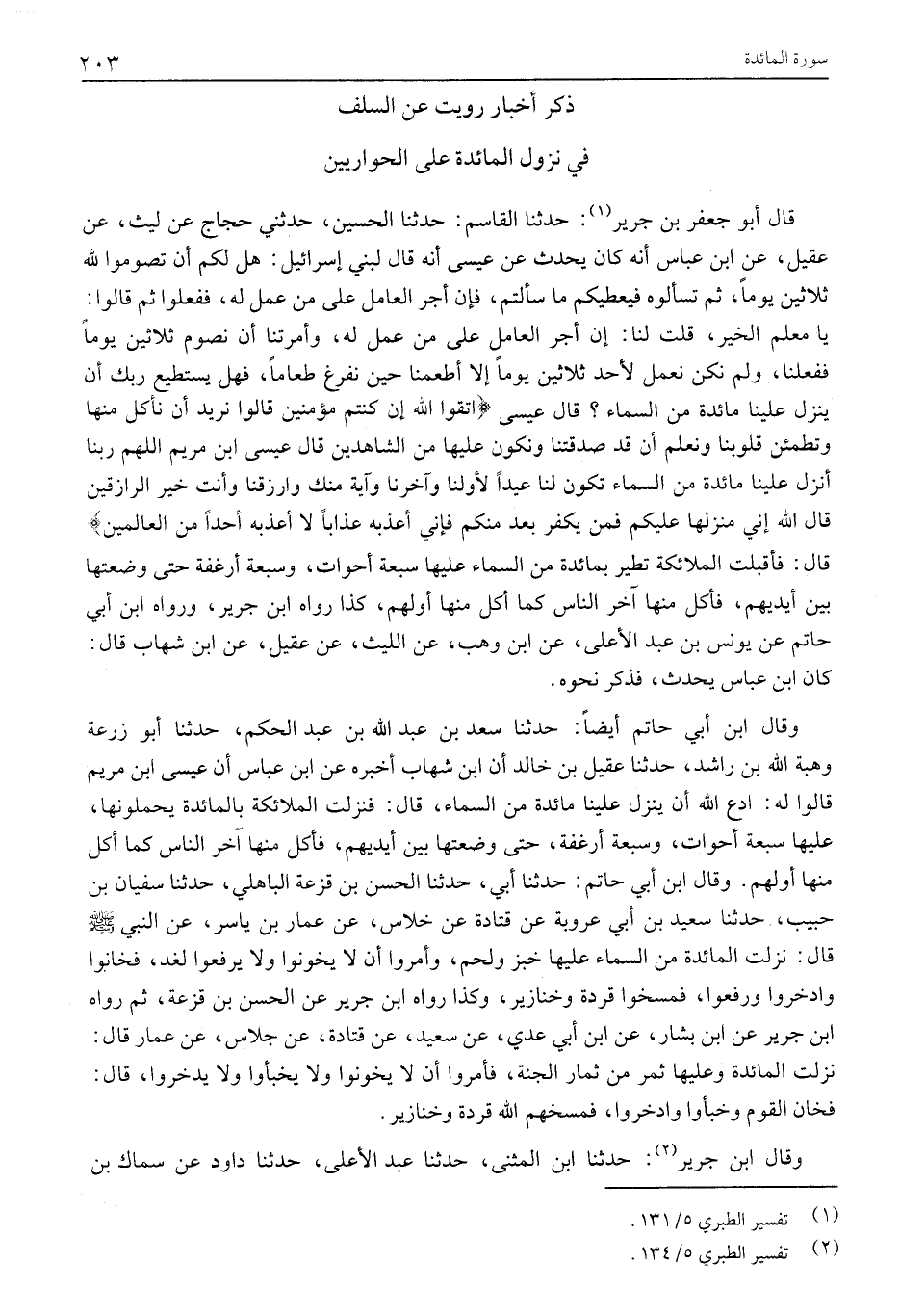 ذِكْرُ أَخْبَارٍ رُوِيَتْ عَنِ السَّلَفِ فِي نُزُولِ الْمَائِدَةِ عَلَى الْحَوَارِيِّينَ