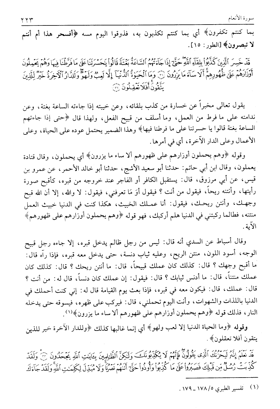 قَدْ خَسِرَ الَّذِينَ كَذَّبُوا بِلِقاءِ اللَّهِ حَتَّى إِذا جاءَتْهُمُ السَّاعَةُ بَغْتَةً قالُوا يَا حَسْرَتَنا عَلى مَا فَرَّطْنا فِيها وَهُمْ يَحْمِلُونَ أَوْزارَهُمْ عَلى ظُهُورِهِمْ أَلا ساءَ مَا يَزِرُونَ (31) وَمَا الْحَياةُ الدُّنْيا إِلاَّ لَعِبٌ وَلَهْوٌ وَلَلدَّارُ الْآخِرَةُ خَيْرٌ لِلَّذِينَ يَتَّقُونَ أَفَلا تَعْقِلُونَ (32)