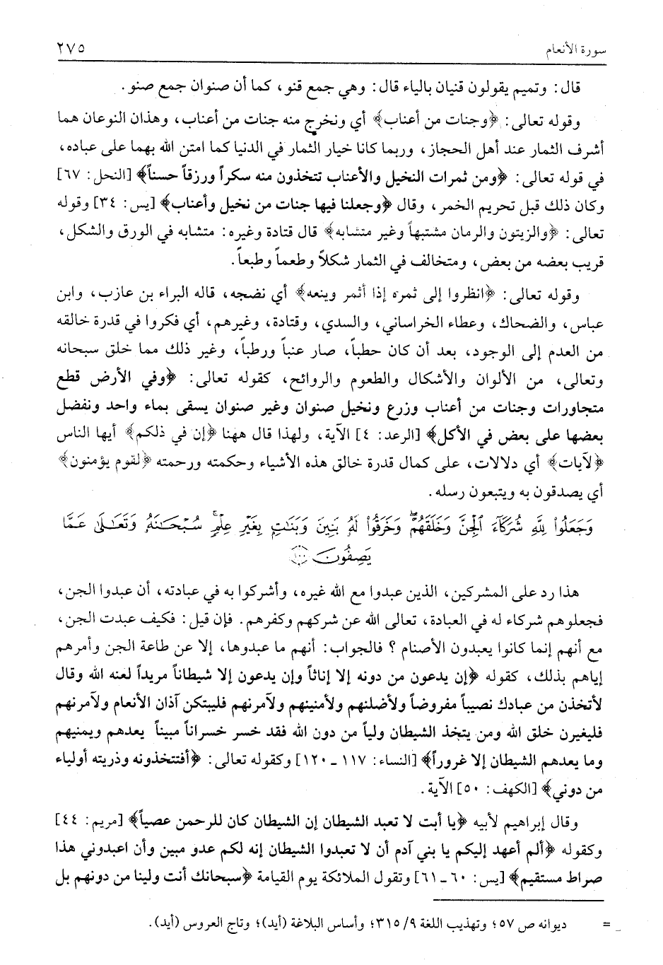 وَجَعَلُوا لِلَّهِ شُرَكاءَ الْجِنَّ وَخَلَقَهُمْ وَخَرَقُوا لَهُ بَنِينَ وَبَناتٍ بِغَيْرِ عِلْمٍ سُبْحانَهُ وَتَعالى عَمَّا يَصِفُونَ (100)