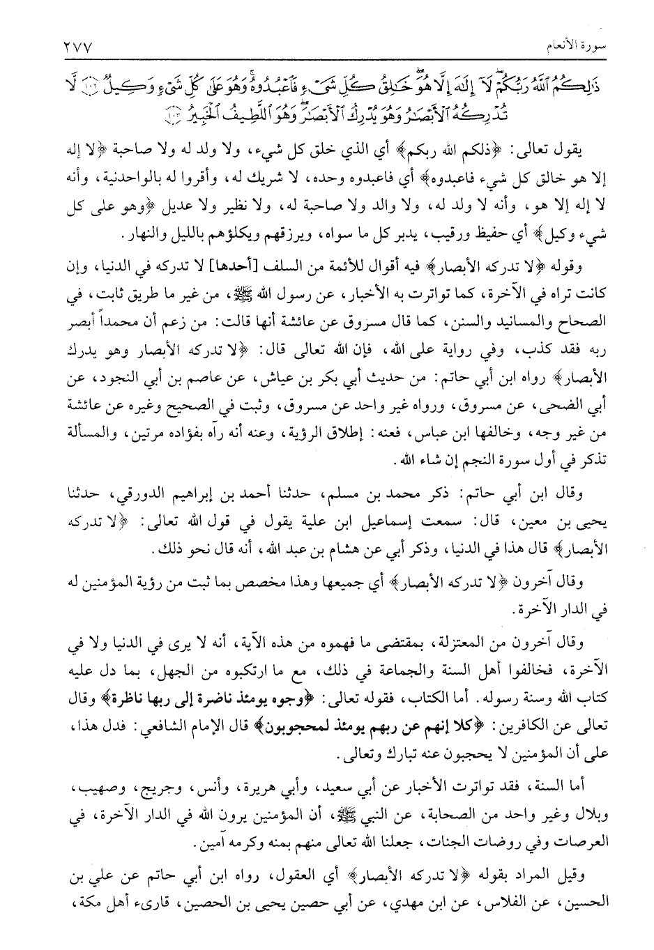 ذلِكُمُ اللَّهُ رَبُّكُمْ لَا إِلهَ إِلاَّ هُوَ خالِقُ كُلِّ شَيْءٍ فَاعْبُدُوهُ وَهُوَ عَلى كُلِّ شَيْءٍ وَكِيلٌ (102) لَا تُدْرِكُهُ الْأَبْصارُ وَهُوَ يُدْرِكُ الْأَبْصارَ وَهُوَ اللَّطِيفُ الْخَبِيرُ (103)