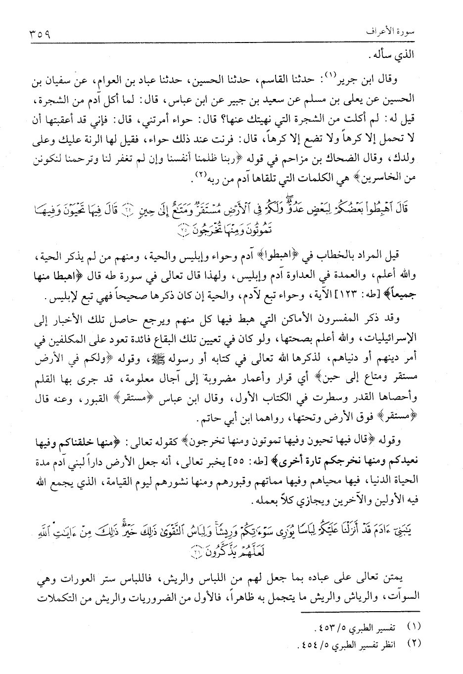 قالَ اهْبِطُوا بَعْضُكُمْ لِبَعْضٍ عَدُوٌّ وَلَكُمْ فِي الْأَرْضِ مُسْتَقَرٌّ وَمَتاعٌ إِلى حِينٍ (24) قالَ فِيها تَحْيَوْنَ وَفِيها تَمُوتُونَ وَمِنْها تُخْرَجُونَ (25)