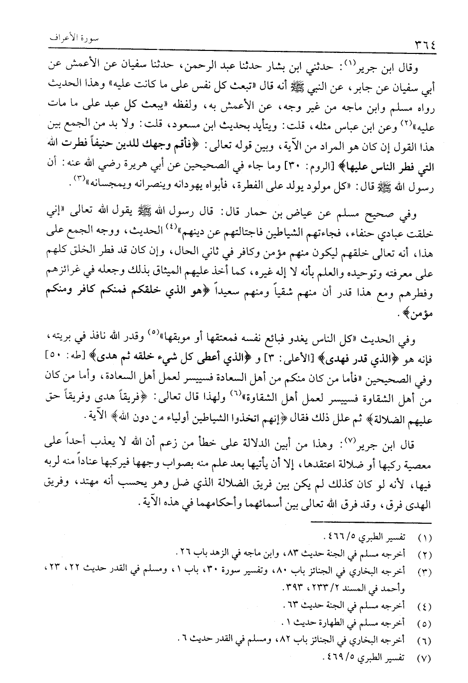 (3) أخرجه البخاري في الجنائز باب 80، وتفسير سورة 30، باب 1، ومسلم في القدر حديث 22، 23، وأحمد في المسند 2/ 233، 393.