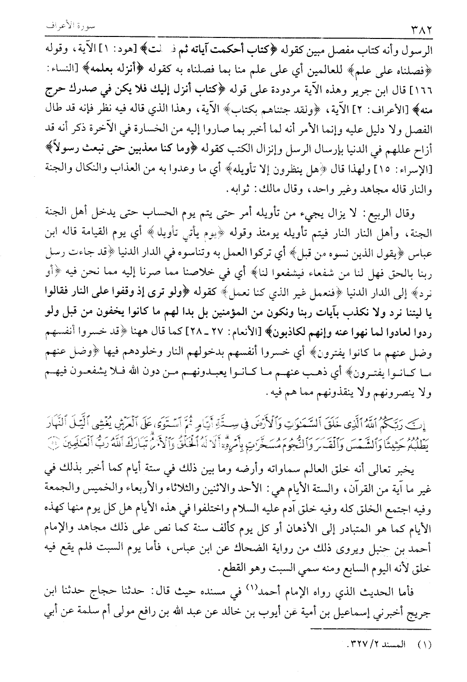166] قَالَ ابْنُ جَرِيرٍ وَهَذِهِ الْآيَةُ مَرْدُودَةٌ عَلَى قَوْلِهِ كِتابٌ أُنْزِلَ إِلَيْكَ فَلا يَكُنْ فِي صَدْرِكَ حَرَجٌ مِنْهُ [الأعراف: 2] الآية، وَلَقَدْ جِئْناهُمْ بِكِتابٍ الْآيَةَ، وَهَذَا الَّذِي قَالَهُ فِيهِ نَظَرٌ فَإِنَّهُ قد طال الفصل ولا دليل عليه وإنما الأمر أنه لما أخبر بما صاروا إليه من الخسارة في الْآخِرَةِ ذَكَرَ أَنَّهُ قَدْ أَزَاحَ عِلَلَهُمْ فِي الدُّنْيَا بِإِرْسَالِ الرُّسُلِ وَإِنْزَالِ الْكُتُبِ كَقَوْلِهِ وَما كُنَّا مُعَذِّبِينَ حَتَّى نَبْعَثَ رَسُولًا [الْإِسْرَاءِ: 15] وَلِهَذَا قَالَ هَلْ يَنْظُرُونَ إِلَّا تَأْوِيلَهُ أَيْ مَا وعدوا به مِنَ الْعَذَابِ وَالنَّكَالِ وَالْجَنَّةِ وَالنَّارِ قَالَهُ مُجَاهِدٌ وَغَيْرُ وَاحِدٍ، وَقَالَ مَالِكٌ: ثَوَابَهُ.