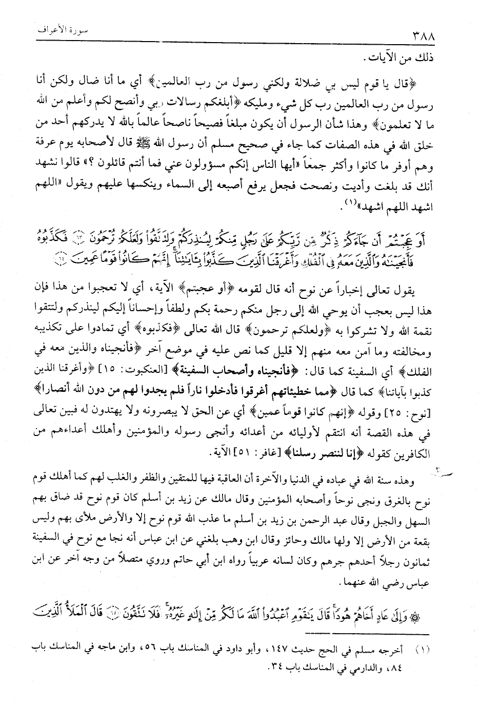 قالَ يَا قَوْمِ لَيْسَ بِي ضَلالَةٌ وَلكِنِّي رَسُولٌ مِنْ رَبِّ الْعالَمِينَ أَيْ مَا أَنَا ضَالٌّ وَلَكِنْ أَنَا رَسُولٌ من رب العالمين رب كل شيء ومليكه أُبَلِّغُكُمْ رِسالاتِ رَبِّي وَأَنْصَحُ لَكُمْ وَأَعْلَمُ مِنَ اللَّهِ مَا لَا تَعْلَمُونَ وهذا شأن الرسول أن يكون مبلغا فصيحا ناصحا عالما بِاللَّهِ لَا يُدْرِكُهُمْ أَحَدٌ مِنْ خَلْقِ اللَّهِ فِي هَذِهِ الصِّفَاتِ كَمَا جَاءَ فِي صَحِيحِ مُسْلِمٍ أَنَّ رَسُولَ اللَّهِ صَلَّى اللَّهُ عَلَيْهِ وَسَلَّمَ قَالَ لِأَصْحَابِهِ يَوْمَ عَرَفَةَ وَهُمْ أَوْفَرُ مَا كَانُوا وَأَكْثَرُ جَمْعًا «أَيُّهَا النَّاسُ إِنَّكُمْ مسؤولون عَنِّي فَمَا أَنْتُمْ قَائِلُونَ؟» قَالُوا نَشْهَدُ أَنَّكَ قَدْ بَلَّغْتَ وَأَدَّيْتَ وَنَصَحْتَ فَجَعَلَ يَرْفَعُ إِصْبَعَهُ إلى السماء وينكسها عليهم ويقول «اللهم اشهد اللهم اشهد» «1» .