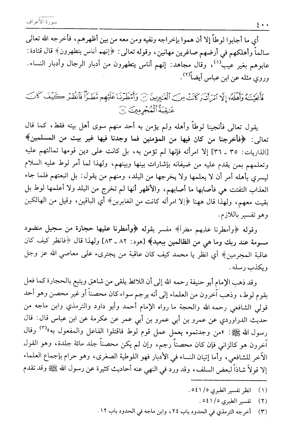 وَقَدْ ذَهَبَ الْإِمَامُ أَبُو حَنِيفَةَ رَحِمَهُ اللَّهُ إِلَى أَنَّ اللَّائِطَ يُلْقَى مِنْ شَاهِقٍ وَيُتْبَعُ بِالْحِجَارَةِ كَمَا فُعِلَ بِقَوْمِ لُوطٍ، وَذَهَبَ آخَرُونَ مِنَ الْعُلَمَاءِ إِلَى أَنَّهُ يُرْجَمُ سَوَاءً كَانَ مُحْصَنًا أَوْ غَيْرَ مُحْصَنٍ وَهُوَ أَحَدُ قَوْلَيِ الشَّافِعِيِّ رَحِمَهُ اللَّهُ وَالْحُجَّةُ مَا رَوَاهُ الْإِمَامُ أَحْمَدُ وَأَبُو دَاوُدَ وَالتِّرْمِذِيُّ وَابْنُ مَاجَهْ مِنْ حَدِيثِ الدَّرَاوَرْدِيِّ عَنْ عَمْرِو بْنِ أَبِي عمرو بن أبي عُمَرَ عَنْ عِكْرِمَةَ عَنِ ابْنِ عَبَّاسٍ قَالَ: قَالَ رَسُولُ اللَّهِ صَلَّى اللَّهُ عَلَيْهِ وَسَلَّمَ: «مَنْ وَجَدْتُمُوهُ يَعَمَلُ عَمَلَ قَوْمِ لُوطٍ فَاقْتُلُوا الْفَاعِلَ وَالْمَفْعُولَ بِهِ» «3» وَقَالَ آخَرُونَ هُوَ كَالزَّانِي فَإِنْ كَانَ مُحْصَنًا رُجِمَ، وَإِنْ لَمْ يَكُنْ مُحْصَنًا جُلِدَ مِائَةَ جِلْدَةٍ، وَهُوَ الْقَوْلُ الْآخَرُ لِلشَّافِعِيِّ، وَأَمَّا إِتْيَانُ النِّسَاءِ فِي الْأَدْبَارِ فَهُوَ اللُّوطِيَّةُ الصُّغْرَى، وَهُوَ حَرَامٌ بِإِجْمَاعِ الْعُلَمَاءِ إِلَّا قولا شَاذًا لِبَعْضِ السَّلَفِ، وَقَدْ وَرَدَ فِي النَّهْيِ عَنْهُ أَحَادِيثُ كَثِيرَةٌ عَنْ رَسُولِ اللَّهِ صَلَّى اللَّهُ عَلَيْهِ وَسَلَّمَ وقد تقدم