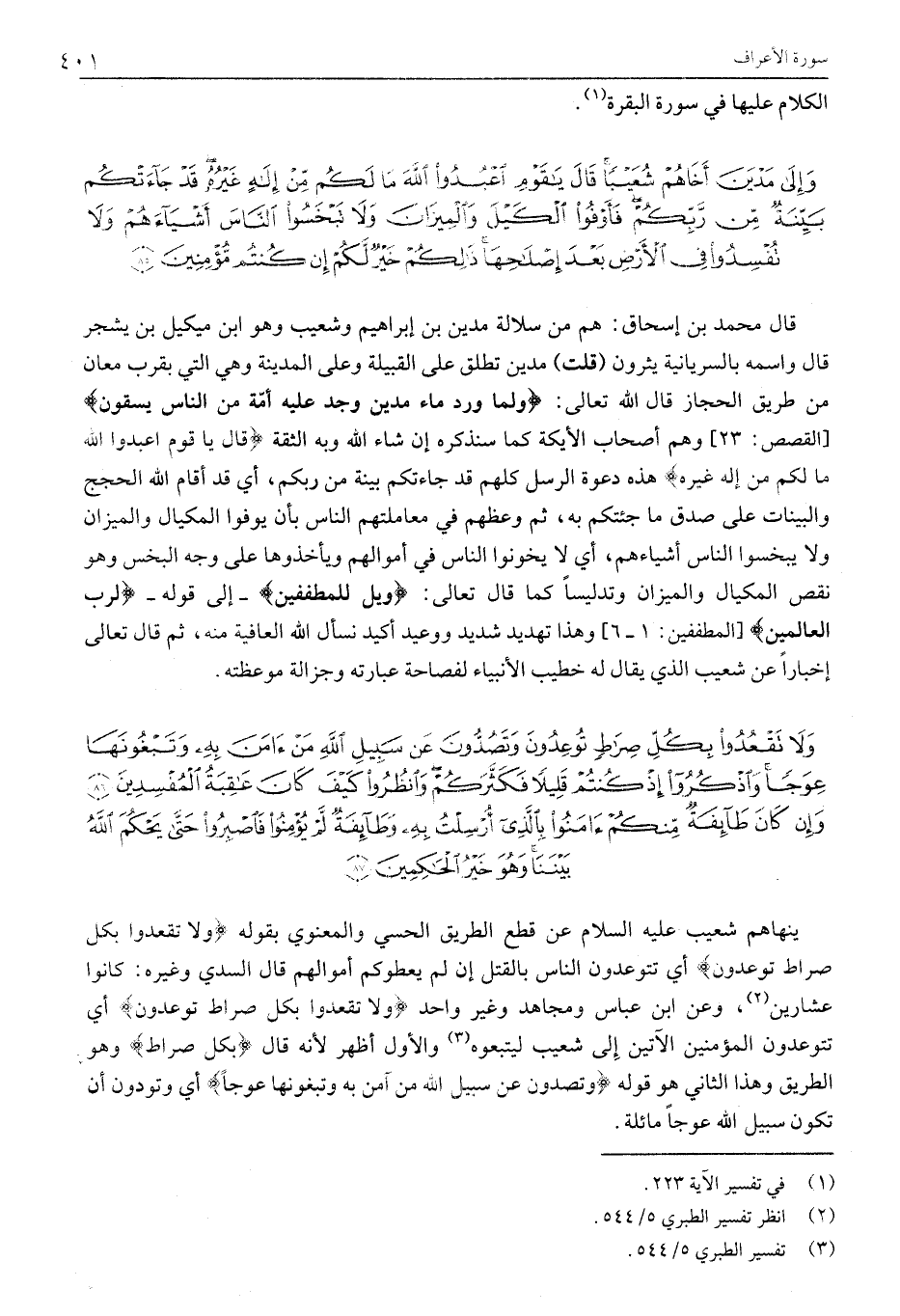 وَإِلى مَدْيَنَ أَخاهُمْ شُعَيْباً قالَ يَا قَوْمِ اعْبُدُوا اللَّهَ مَا لَكُمْ مِنْ إِلهٍ غَيْرُهُ قَدْ جاءَتْكُمْ بَيِّنَةٌ مِنْ رَبِّكُمْ فَأَوْفُوا الْكَيْلَ وَالْمِيزانَ وَلا تَبْخَسُوا النَّاسَ أَشْياءَهُمْ وَلا تُفْسِدُوا فِي الْأَرْضِ بَعْدَ إِصْلاحِها ذلِكُمْ خَيْرٌ لَكُمْ إِنْ كُنْتُمْ مُؤْمِنِينَ (85)