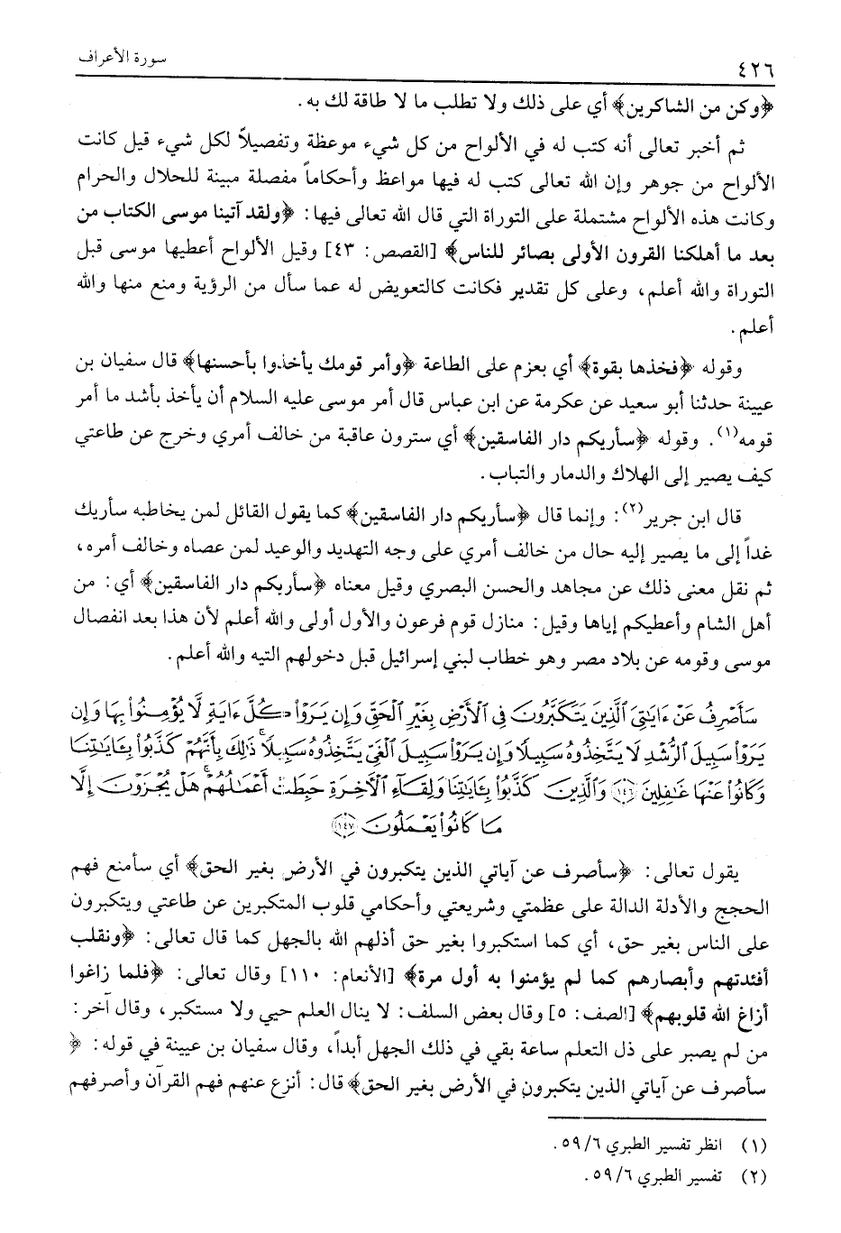سَأَصْرِفُ عَنْ آياتِيَ الَّذِينَ يَتَكَبَّرُونَ فِي الْأَرْضِ بِغَيْرِ الْحَقِّ وَإِنْ يَرَوْا كُلَّ آيَةٍ لَا يُؤْمِنُوا بِها وَإِنْ يَرَوْا سَبِيلَ الرُّشْدِ لَا يَتَّخِذُوهُ سَبِيلاً وَإِنْ يَرَوْا سَبِيلَ الغَيِّ يَتَّخِذُوهُ سَبِيلاً ذلِكَ بِأَنَّهُمْ كَذَّبُوا بِآياتِنا وَكانُوا عَنْها غافِلِينَ (146) وَالَّذِينَ كَذَّبُوا بِآياتِنا وَلِقاءِ الْآخِرَةِ حَبِطَتْ أَعْمالُهُمْ هَلْ يُجْزَوْنَ إِلاَّ مَا كانُوا يَعْمَلُونَ (147)