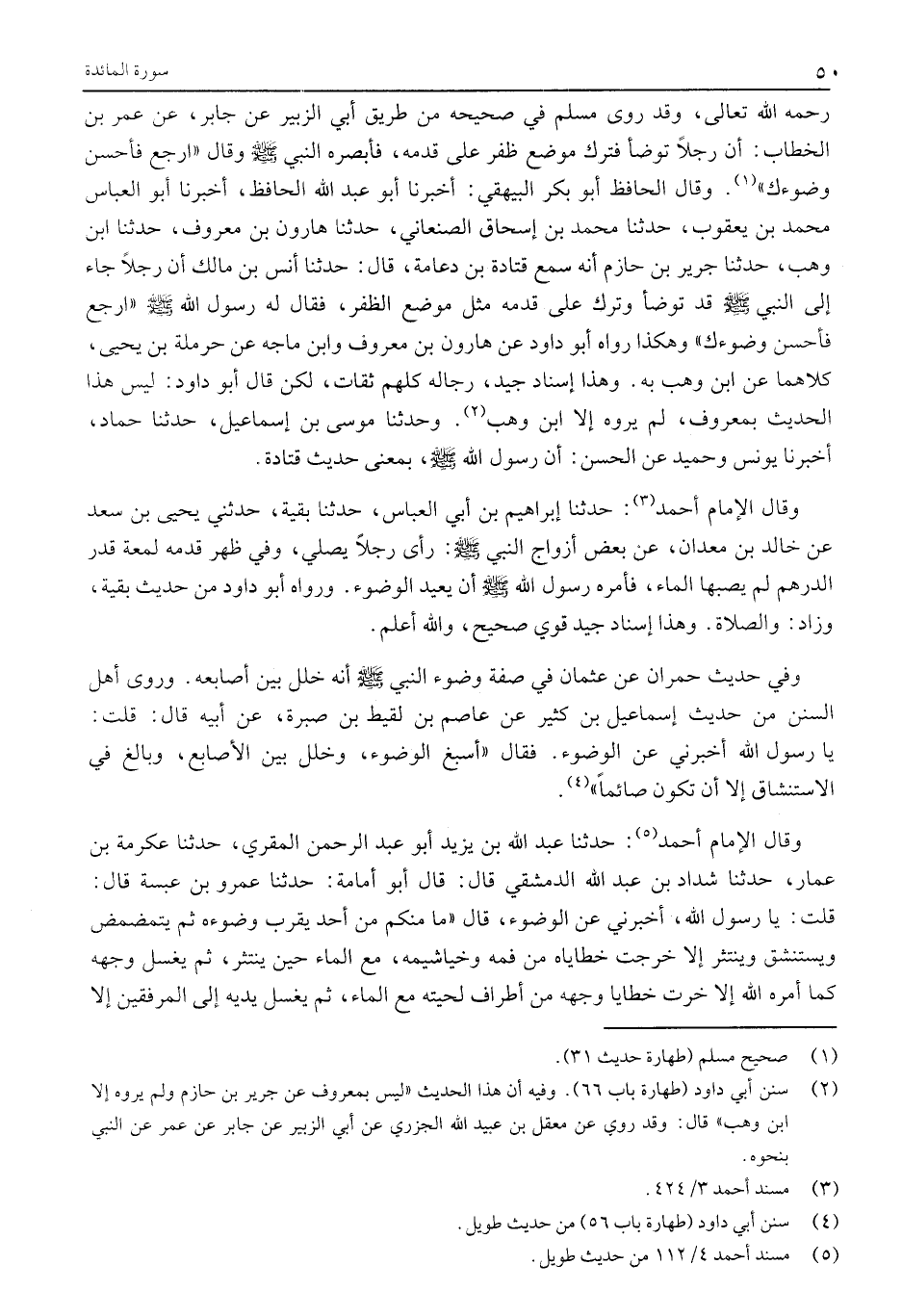 (2) سنن أبي داود (طهارة باب 66) . وفيه أن هذا الحديث «ليس بمعروف عن جرير بن حازم ولم يروه إلا ابن وهب» قال: وقد روي عن معقل بن عبيد الله الجزري عن أبي الزبير عن جابر عن عمر عن النبي بنحوه.