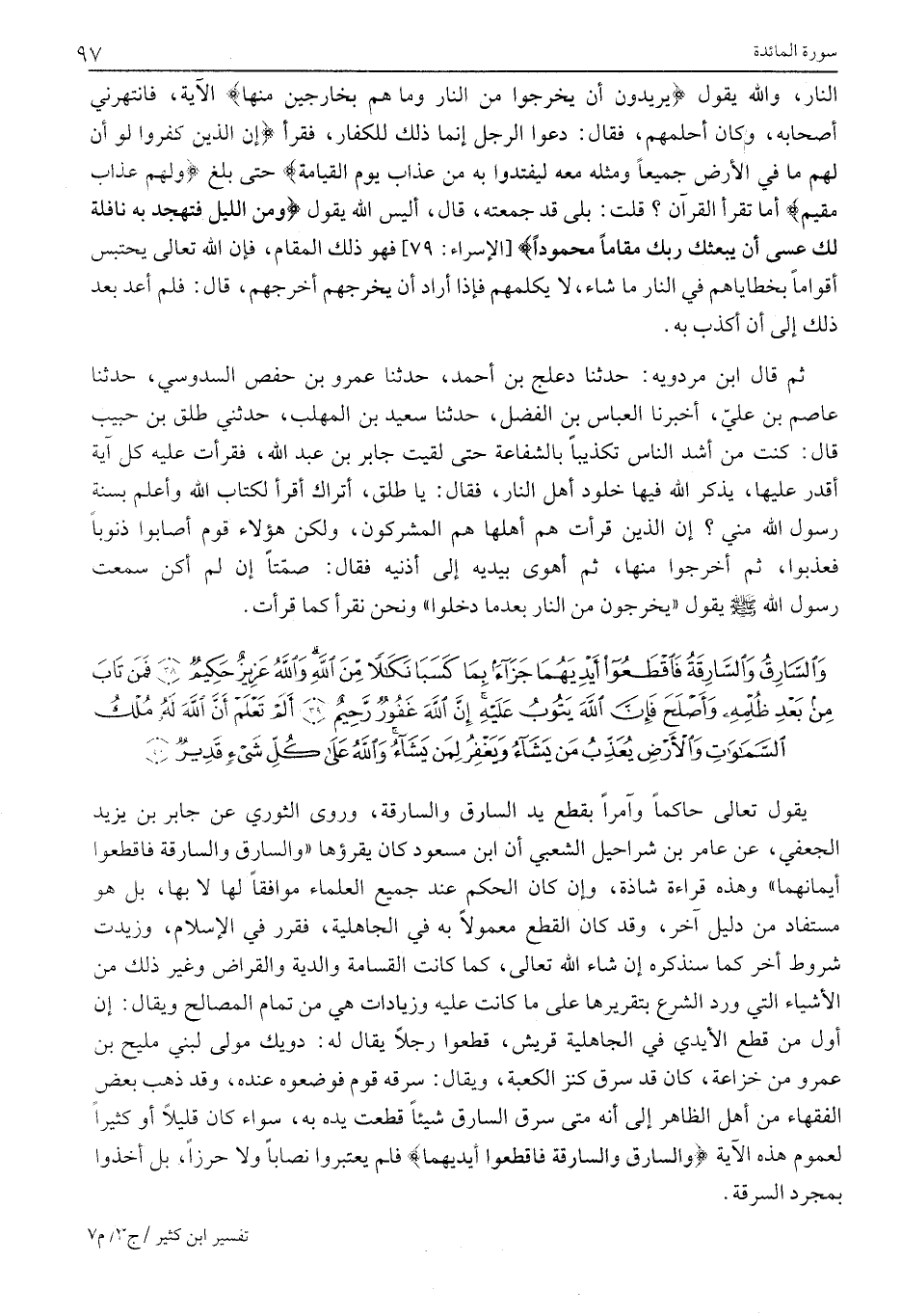وَالسَّارِقُ وَالسَّارِقَةُ فَاقْطَعُوا أَيْدِيَهُما جَزاءً بِما كَسَبا نَكالاً مِنَ اللَّهِ وَاللَّهُ عَزِيزٌ حَكِيمٌ (38) فَمَنْ تابَ مِنْ بَعْدِ ظُلْمِهِ وَأَصْلَحَ فَإِنَّ اللَّهَ يَتُوبُ عَلَيْهِ إِنَّ اللَّهَ غَفُورٌ رَحِيمٌ (39) أَلَمْ تَعْلَمْ أَنَّ اللَّهَ لَهُ مُلْكُ السَّماواتِ وَالْأَرْضِ يُعَذِّبُ مَنْ يَشاءُ وَيَغْفِرُ لِمَنْ يَشاءُ وَاللَّهُ عَلى كُلِّ شَيْءٍ قَدِيرٌ (40)