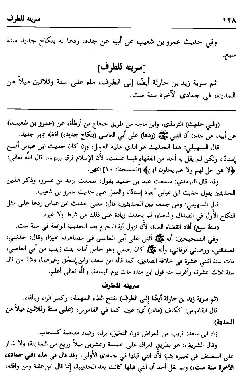 "ثم سرية زيد بن حارثة أيضا إلى الطرف" بفتح الطاء المهملة، وكسر الراء وبالفاء.
