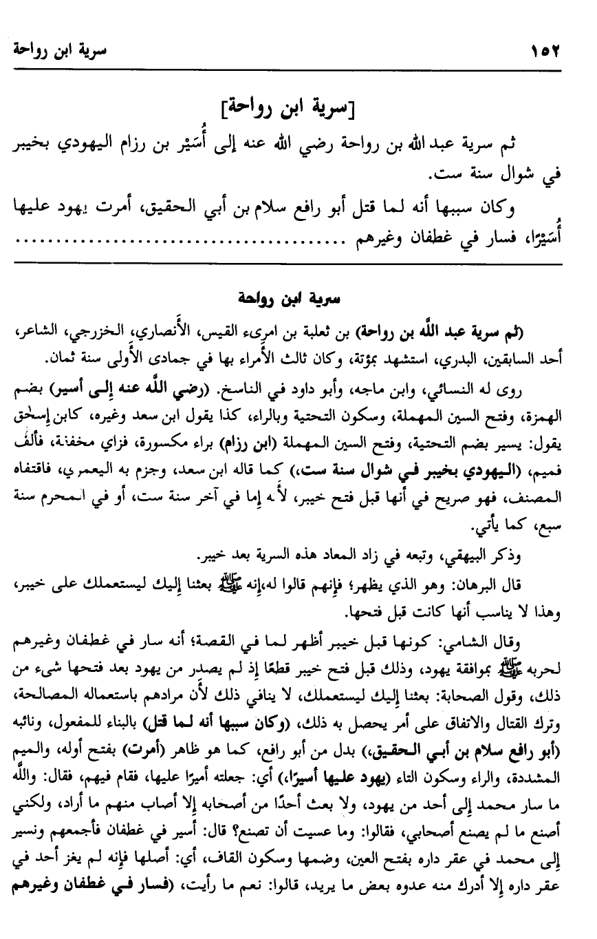 ثم سرية عبد الله بن رواحة رضي الله عنه إلى أُسَيْر بن رزام اليهودي بخيبر في شوال سنة ست.