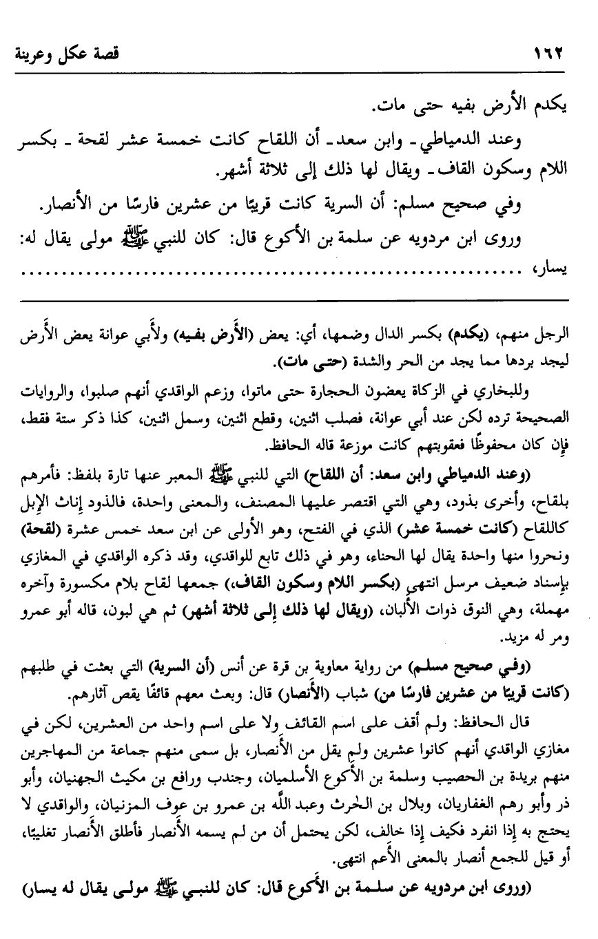 "وفي صحيح مسلم" من رواية معاوية بن قرة عن أنس " أن السرية" التي بعثت في طلبهم "كانت قريبا من عشرين فارسا من" شباب "الأنصار" قال: وبعث معهم قائفا يقص آثارهم.