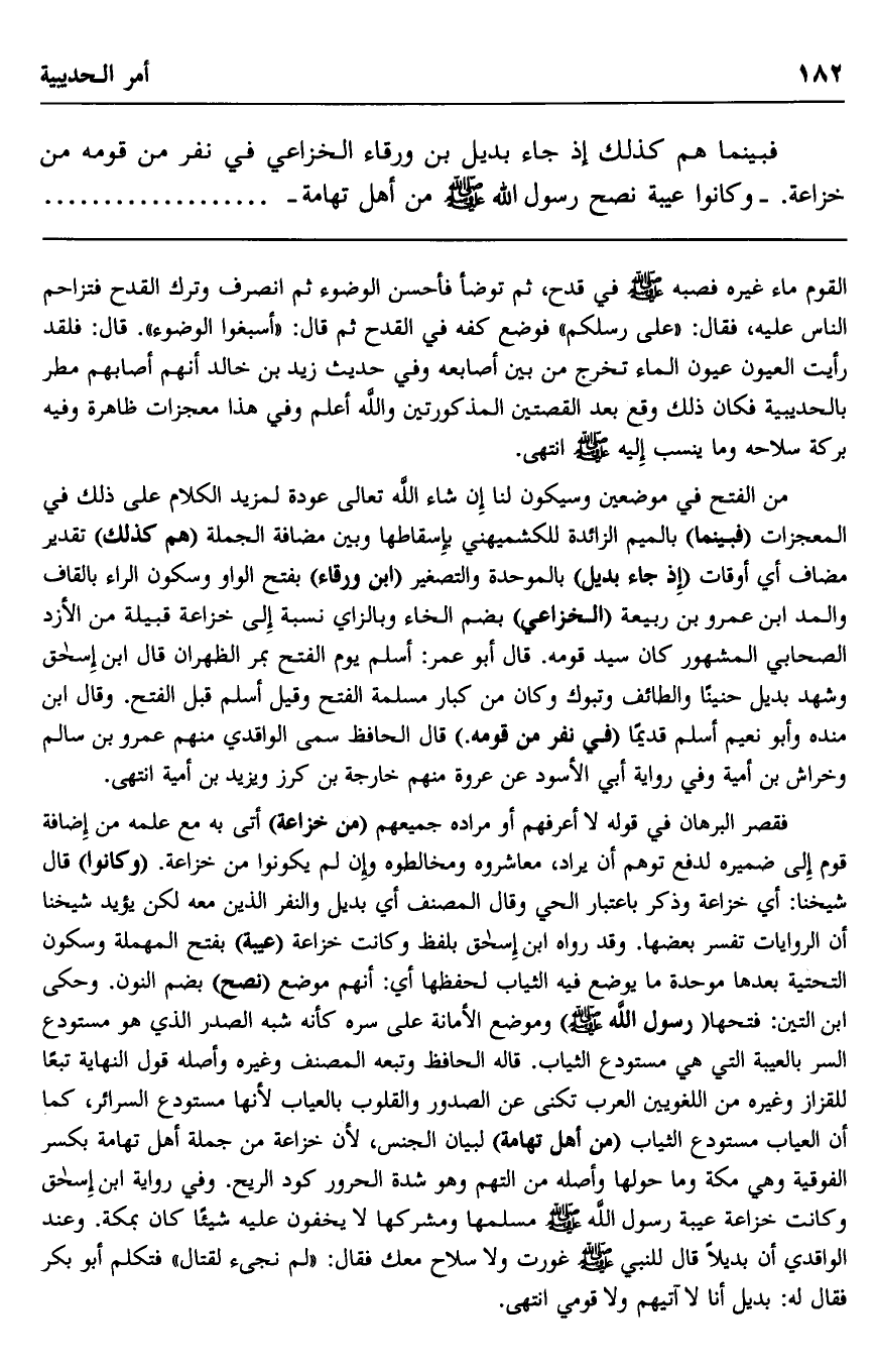 فبينما هم كذلك إذ جاء بديل بن ورقاء الخزاعي في نفر من قومه من خزاعة, وكانوا عيبة نصح رسول الله صلى الله عليه وسلم من أهل تهامة