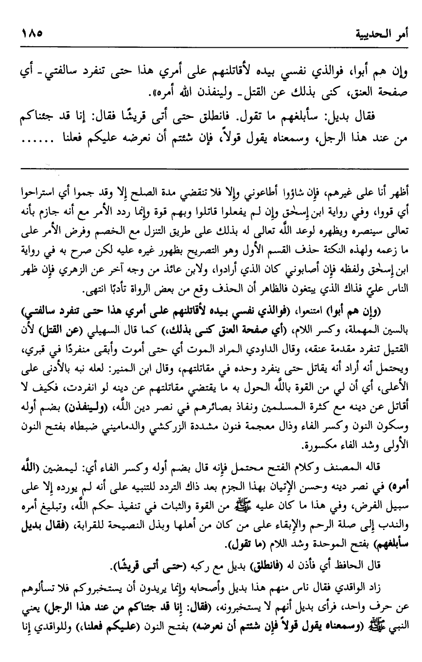 وإن هم أبوا، فوالذي نفسي بيده لأقاتلنهم على أمري هذا حتى تنفرد سالفتي -أي صفحة العنق، كنى بذلك عن القتل- ولينقذن الله أمره".