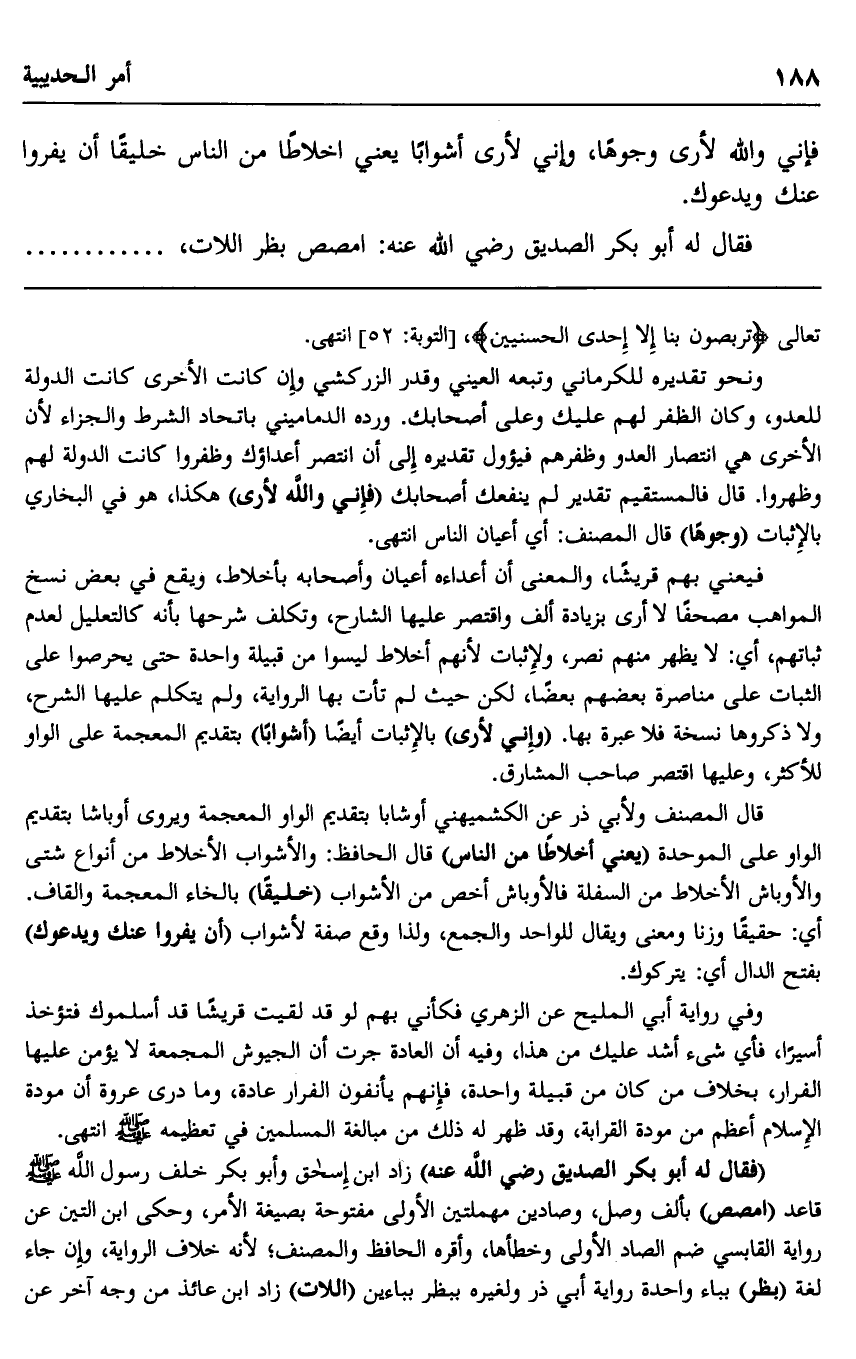 ونحو تقديره للكرماني وتبعه العيني وقدر الزركشي وإن كانت الأخرى كانت الدولة للعدو، وكان الظفر لهم عليك وعلى أصحابك. ورده الدماميني باتحاد الشرط والجزاء لأن الأخرى هي انتصار العدو وظفرهم فيئول تقديره إلى أن انتصر أعداؤك وظفروا كانت الدولة لهم وظهورا. قال فالمستقيم تقدير لم ينفعك أصحابك "فإني والله لأرى" هكذا، هو في البخاري بالإثبات "وجوها" قال المصنف: أي أعيان الناس. انتهى.