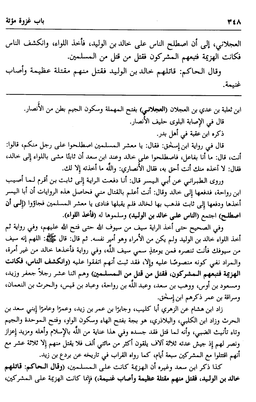العجلاني، إلى أن اصطلح الناس على خالد بن الوليد، فأخذ اللواء، وانكشف الناس فكانت الهزيمة فتبعهم المشركون فقتل من قتل من المسلمين.