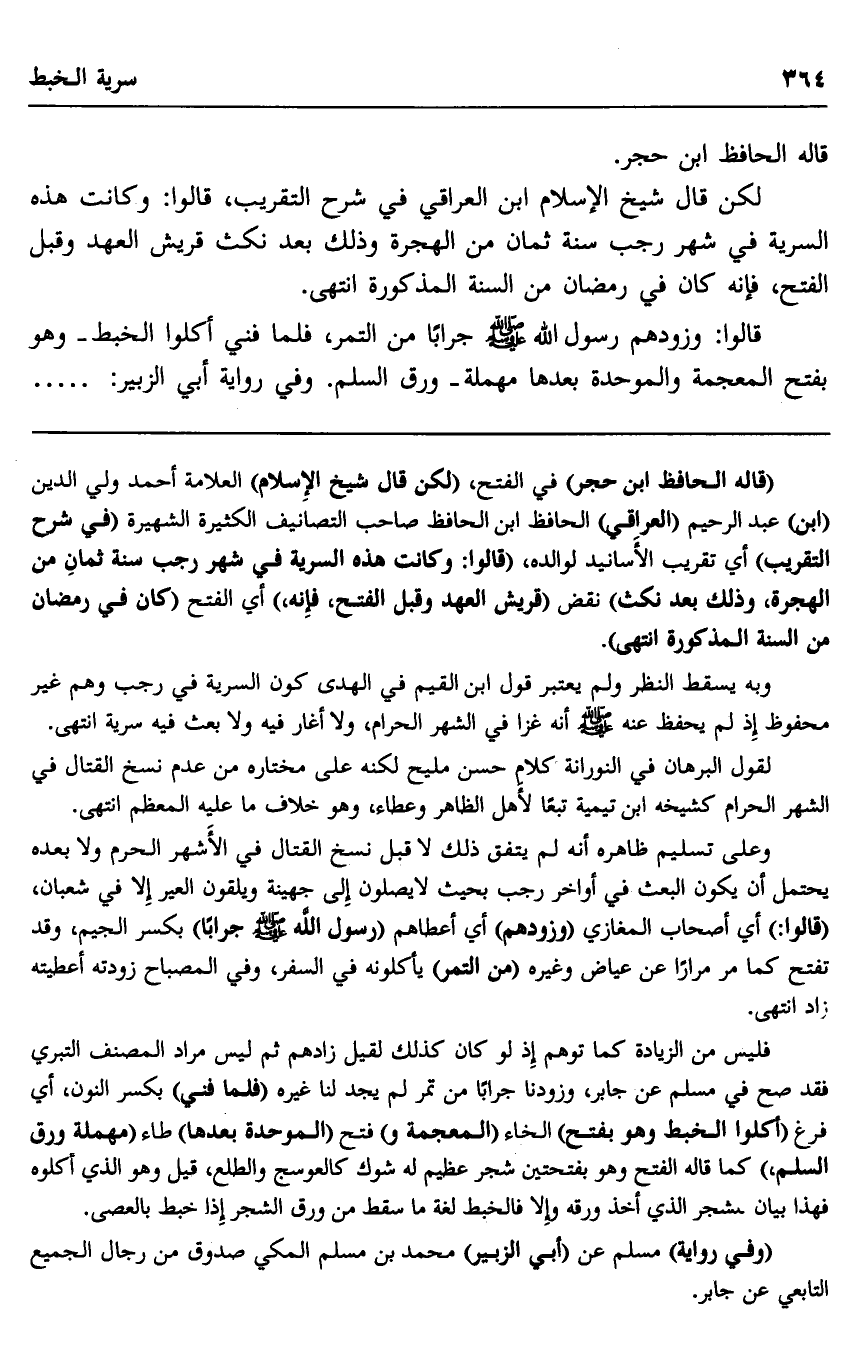 وبه يسقط النظر ولم يعتبر قول ابن القيم في الهدى كون السرية في رجب وهم غير محفوظ إذ لم يحفظ عنه صلى الله عليه وسلم أنه غزا في الشهر الحرام، ولا أغار فيه ولا بعث فيه سرية. انتهى.