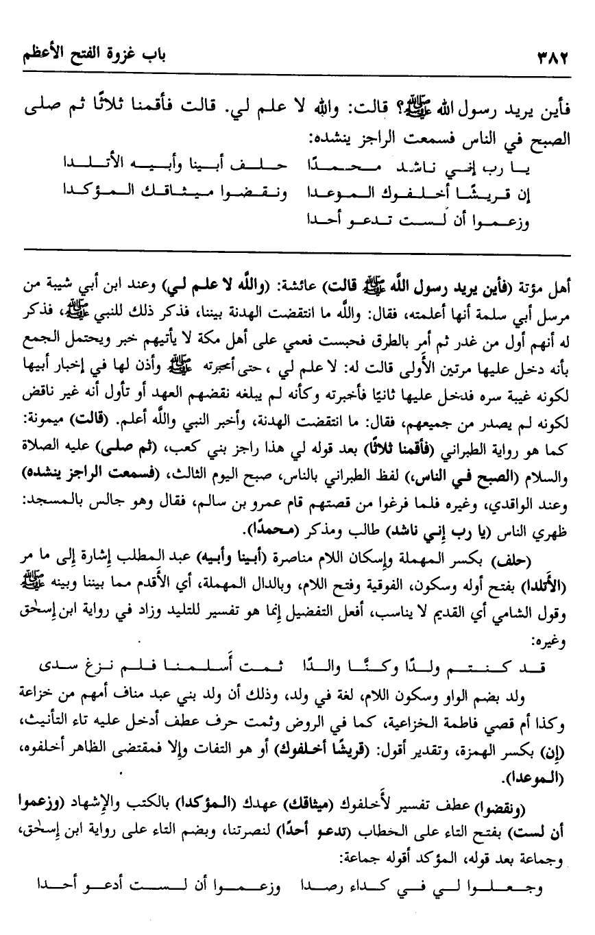 فأين يريد رسول الله صلى الله عليه وسلم؟ قالت: والله لا علم لي. قالت فأقمنا ثلاثا ثم صلى الصبح في الناس فسمعت الراجز ينشده: