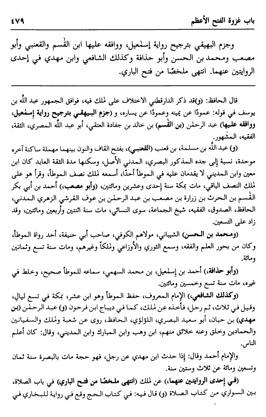 وجزم البيهقي بترجيح روية إسماعيل، ووافقه عليها ابن القاسم والقعنبي وأبو مصعب ومحمد بن الحسن وأبو حذافة وكذلك الشافعي وابن مهدي في إحدى الروايتين عنهما. انتهى ملخصا من فتح الباري.